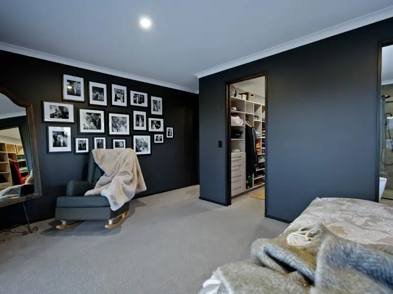 Three beautifully appointed bedrooms, each with breathtaking views. The master suite a true sanctuary, with outlook over deer–dotted paddocks to the majestic Southern Alps and foothills. The indulgent ensuite features a heated floor, dual showers with rain and monsoon heads, and a freestanding French tub, perfectly positioned for soaking in the alpine panorama. A walk–in wardrobe impresses with thoughtful design, extensive storage, hidden dressing table, full–length mirror, and solar tube lighting.