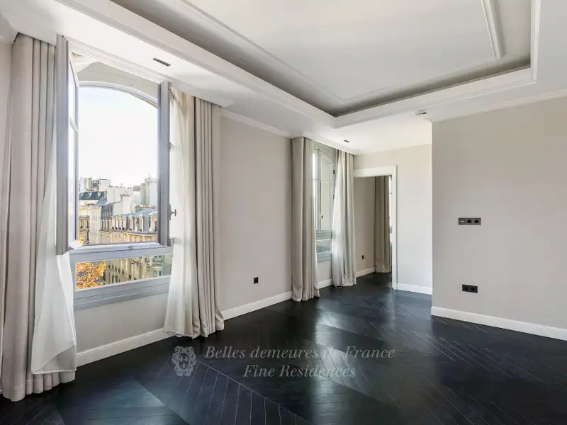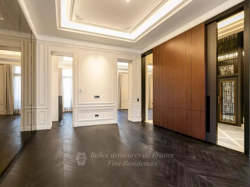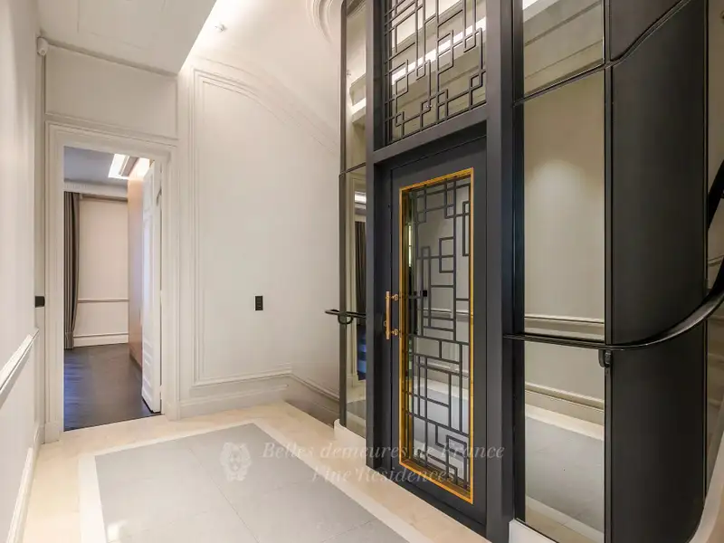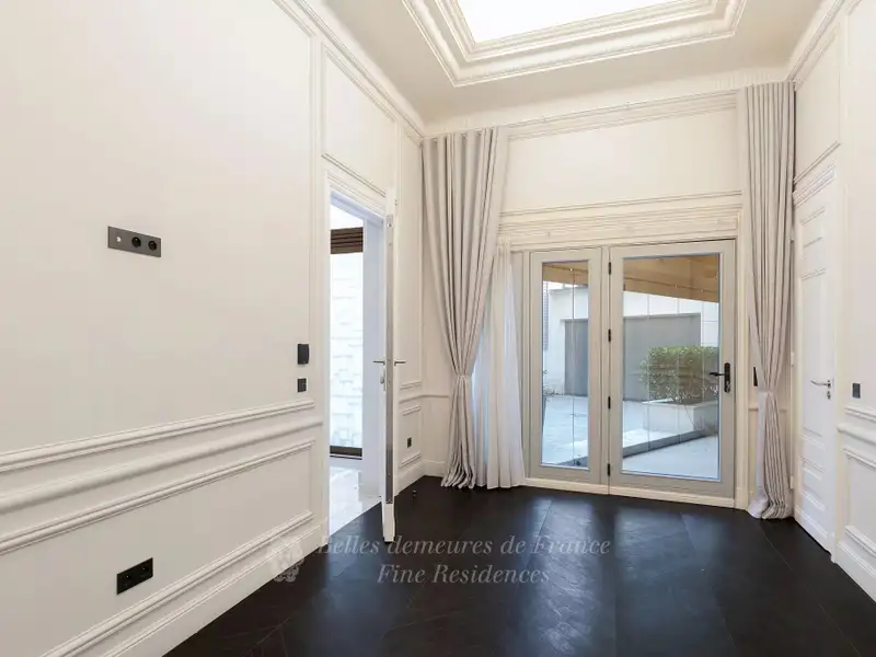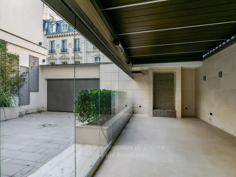 Etoile/Iéna. This sumptuous 614 sqm private mansion located a stone’s throw from the Arc de Triomphe has been meticulously renovated throughout. On four floors including a fitted basement, it includes an entrance hall, a security monitoring room, a study, and a conservatory with a mobile sunroof opening onto a leafy courtyard and benefiting from independent access. The first floor comprises a living/reception room featuring a 4-metre high ceiling, and a dining room. A spacious master suite with a bathroom, a dressing room and a sitting room is on the second floor, and five further suites with bathrooms are on the top floor. The basement comprises a spacious professional kitchen, a screening room, a wine cellar, two staff studio apartments and technical premises. State-of-the-art security system. With a courtyard parking space. An exceptional property bathed in sunshine.