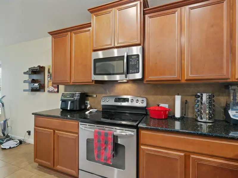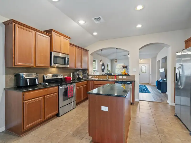 - Granite counters with kitchen island