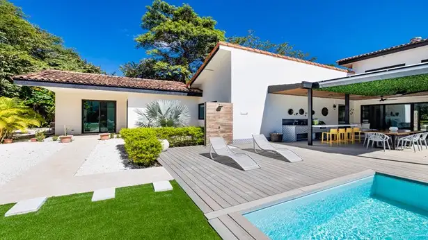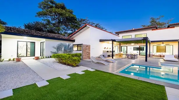 Introducing Los Almendros 51, a unique tropical-modern home that offers a very attractive blend of elegance, functionality, and comfort, along with a great sense of privacy and connection with nature. This stunning golf-front home is in the coveted Los Almendros community, within the very sought-after Hacienda Pinilla development, where you can find a plethora of luxury services, to cater for all tastes and where you can spend endless hours of fun and relaxation.Casa Los Almendros 51 comes fully furnished and comprises of 6 bedrooms, 6 bathrooms and 2 half bathrooms, with an ample living space of 5296 sq ft, a total construction of 7696 sq ft, within a lot of half an acre, giving you the space to host and entertain large groups of friends and family or for vacation rental purposes. In fact, the number of rooms, top notch amenities, its privileged location and low maintenance costs (solar panels, artificial grass, durable materials), makes Los Almendros 51 your ideal choice when looking for a property with great income generating potential. It already has future rentals accounting for $120,000 in just 2 months of being in the rental market.Upon arriving at the property, you will notice its modern design, crowned by an impressive lobby, ideal for meeting and greeting your guests. When entering the house, an ample hallway works as a preamble to the beautiful social areas of this home.The modern and spacious kitchen is the dream of people who love to cook, as it comes fully equipped with everything necessary to prepare delicious meals in a comfortable way. The ample cooking island and the rest of the cabinetry come with lights underneath, activated by contactless sensors, giving it a modern and classy effect. The high ceiling keeps the kitchen cooler and allows for lots of natural light to fill that area. Next to the kitchen is the laundry room and the two cars' garage, both areas are sizeable.Towards the right are the living and dining room, beautifully furnished and seamlessly integrated with the terrace and pool area through glass sliding doors. A hallway connects the social area with the half bathroom and two master bedrooms, each comprising of walking closet and ensuite bathroom. Both bedrooms are tastefully decorated with tropical murals, bringing color and join to them. The other four bedrooms are distributed two on each side of the pool and each bedroom has its own ensuite bathroom. This distribution gives good privacy to guests and easy access to the pool and terrace area.The terrace offers lounging chairs with a stunning view of the pool and the green areas, where you can soak up all year-round sunshine and be mesmerized by breathtaking sunsets. The BBQ area offers a dinner table and a large countertop with a built-in grill, ideal to enjoy meals and gatherings under the beautiful Costa Rican weather.The impressive pool area is crowned by a fire pit and an outdoor bathtub surrounded by palms, where you can have very relaxing baths under the stars. Another key feature of Los Almendros 51 is a brand new cinema for twelve people, adding to the great value proposition of this home and maximizing the potential for rental income. Hacienda Pinilla it’s a 4500-acre gated community with 3 miles (5km) of coastline and just 15 minutes from the world famous, Playa Tamarindo and just 1 hour away from Liberia International Airport. Within this luxury community, you’ll find multiple world-class surf spots, an 18-hole golf course, an exclusive beach club & restaurant, equestrian center with horseback riding, 2 tennis courts, 40km of mountain bike trails and the JW Marriott, that encompasses 5 restaurants, spa and the largest pool in Central America. In Hacienda Pinilla you will find a place where the deep legacy of a Costa Rican ranch is perched on the shores of the pristine waters of the Pacific Ocean in one of Costa Rica’s most spectacular settings. A place where every day brings a new experience and lasting memories.