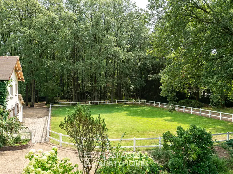 This exceptional property includes quality equestrian facilities as well as a spacious living space with beautiful services. As soon as you enter, you will be seduced by a vast living room of more than 100 sqm, offering a breathtaking view of the surrounding nature.