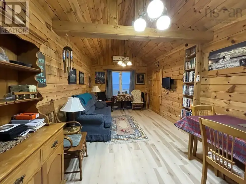 On the edge of Cheticamp Island, this 3-season oceanfront cottage offers approximately 1.25 acres of pure coastal beauty and your very own beach. Watch the sun melt into the horizon, stroll the shoreline to the nearby sandy beach, and end the day gathered around a crackling fire by the ocean, the stars overhead and the waves as your soundtrack. Inside, the cottage glows with warmth - wood walls and ceilings wrap the kitchen, dining, and living areas in rustic charm. The living rooms cathedral ceiling adds a sense of space, while a single large window perfectly frames the sea. Step onto the back deck and take in the view that will draw you outside time and again. The primary bedroom is generously sized, with room for a king bed, while the smaller cozy guest room keeps visits short but sweet. A heat pump and baseboard heaters add comfort, and the home comes fully furnished - just bring your bags and groceries. Only three minutes from town, yet worlds away in peace and privacy, this retreat is perfect as a summer escape or the site for a future year-round home by the sea. (id:2494)