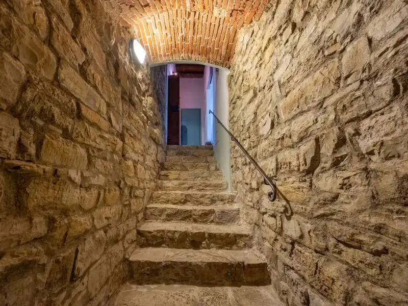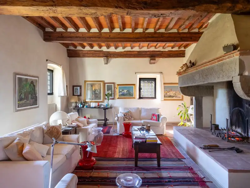 It originated as a tower house in the 12th century. Subsequent enlargements resulted in the “scapicozzatura” of the tower, and before being used as a farmhouse, it was used for religious purposes, as specific finishes, in the present living room, suggest.