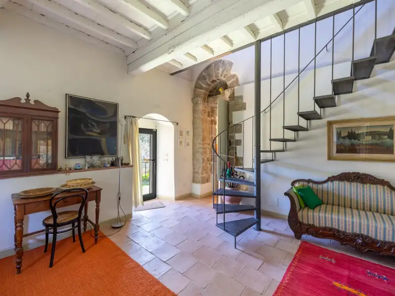 The property is characterized by ceilings ranging between 3.20 m and 3.50 m, open spaces, and many openings to the outside, features not easily found in farmhouses. The stone portals on the ground floor are valuable.