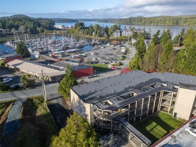Two bedroom pet friendly condo in the heart of Ucluelet, offering strong rental potential for investment, staff accommodation or a vacation home on Vancouver Island. Partially upgraded Ucluelet condo features an open kitchen, dining & living area, updated flooring throughout & in-suite storage/laundry. The covered walkway flanked with lush greenery creates privacy & a tropical courtyard feel while providing easy year round access in our rainforest climate. Entry is especially convenient as this unit does not require stairs for access. The building offers underground & open parking, a resident common room & additional shared storage areas for owners' gear. Enjoy the west facing balcony to take in the sunsets from a private alcove & in the evening you can catch a glimpse of the boat lights reflecting off the water in the harbour. This central Ucluelet real estate opportunity is located across from the boat basin, gym, pool, & sauna, w/ shops, trails, & dock walks only steps away.