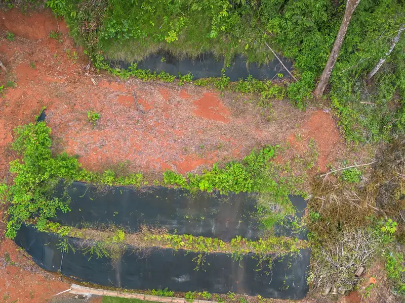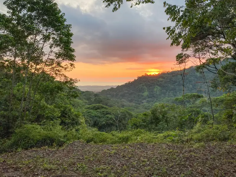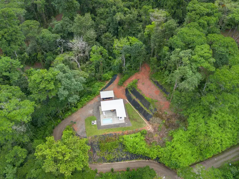 The land of 1.67 acres (6,794sqm) is nestled in a beautiful rainforest on the mountainside with breathtaking ocean and mountain views. You can enjoy the serenity of the jungle and the sound of the river looking out towards the mountains from the two building pads available on the lot and do your morning hike every day in the gated community’s private path to the Portalon river and stunning Cazuela Waterfall, just 5 minutes away walking from the property.