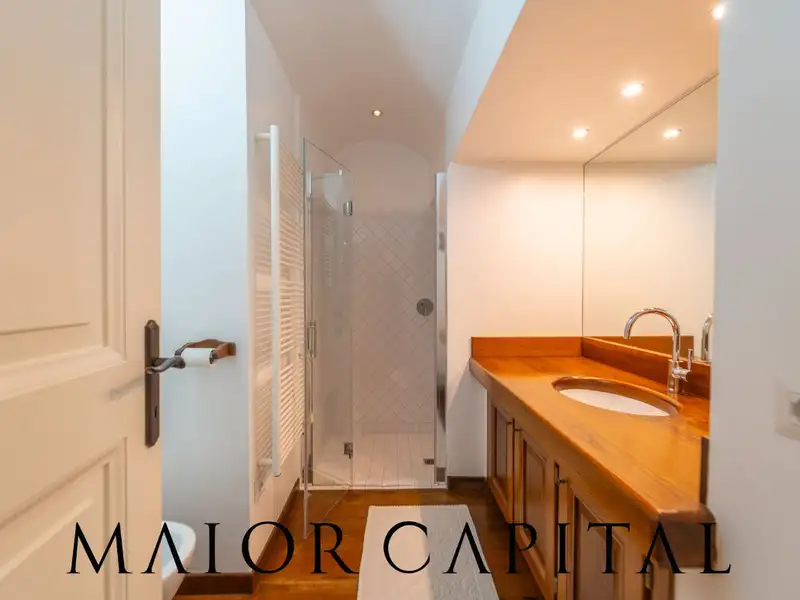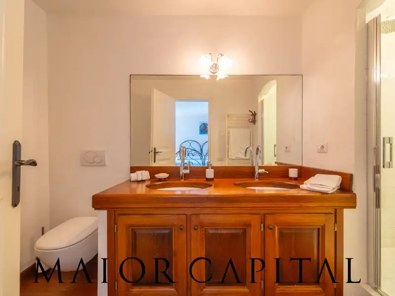 On the lower floor, also accessible via an external entrance, there are four double bedrooms, all bright and generously spacious, with direct access to the garden or terrace via French windows, ensuring privacy and independence for guests. Each bedroom has a large, functional bathroom, while a relaxation lounge and hallway complete the floor, creating an elegant and welcoming environment.