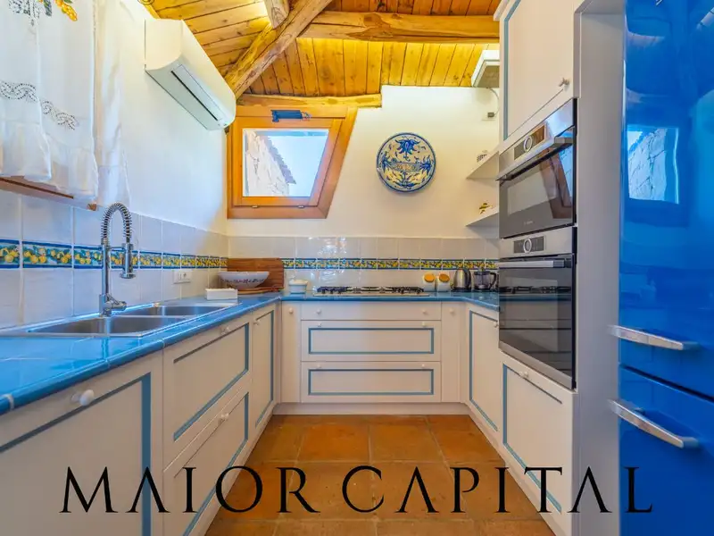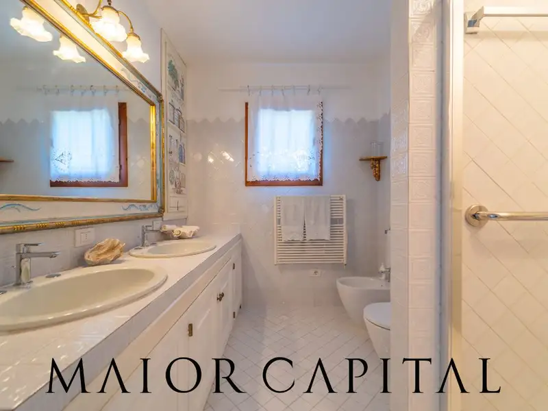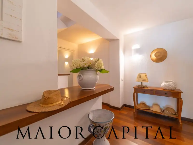 The villa is surrounded by a private park of approximately 4,000 sqm, enriched by lush Mediterranean maquis and a well-tended garden that guarantees total privacy. Access to the property, which opens onto a green lawn, is made even more spectacular by a driveway leading to the entrance patio, embellished with vibrant bougainvillea in bloom. From every corner of the house, you can admire the magnificence of the sea, the view that changes every hour of the day, and the feeling of peace that only such an exclusive location can offer.