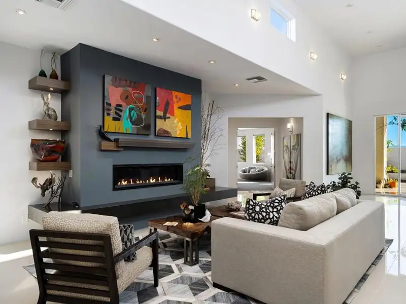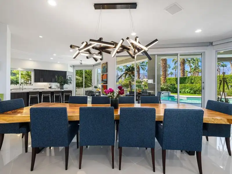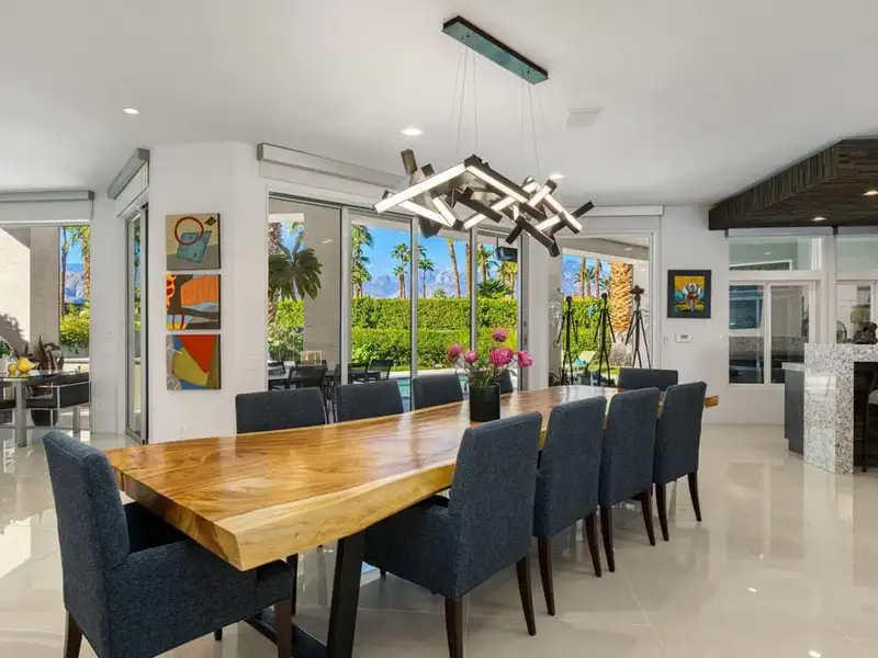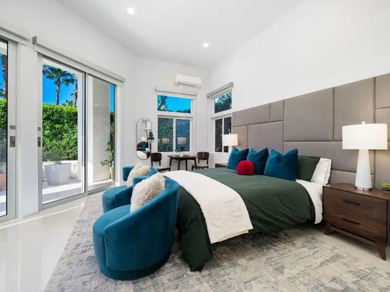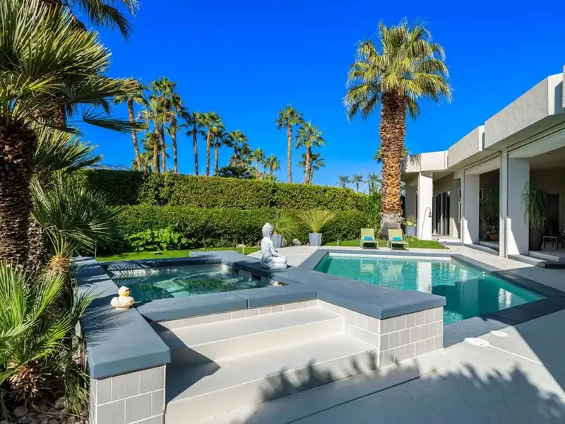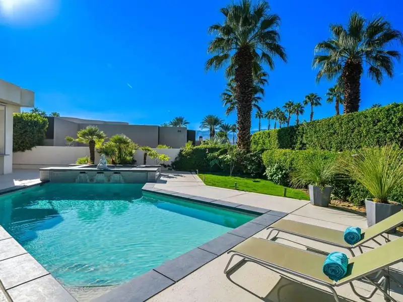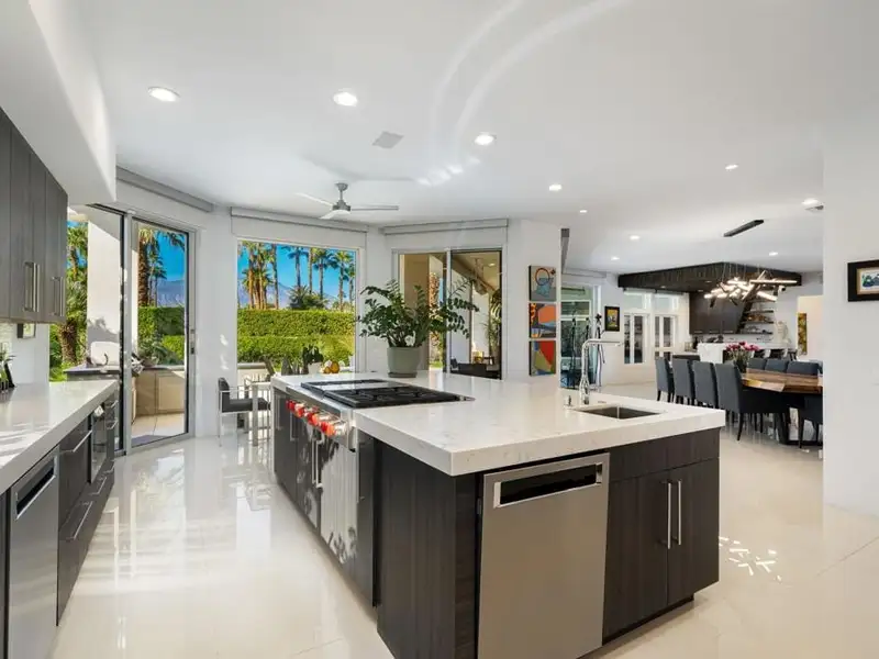 A truly spectacular luxury residence in the exclusive guard-gated community of La Residence. This fully remodeled 5,620 sq ft contemporary masterpiece combines impeccable design with sweeping mountain views. The gourmet kitchen is equipped with Wolf and Sub-Zero appliances, Executive Line cabinetry, dual dishwashers, quartz waterfall counters, and an oversized island with prep sink. Fleetwood sliding glass walls create seamless indoor/outdoor living, opening to multiple covered terraces, pool, spa, outdoor shower, and beautifully landscaped grounds. The primary suite offers a grand fireplace, dual baths, expansive custom closets, and picturesque outlooks. Additional highlights include skylights throughout, central vacuum, surround sound, outdoor heaters, motorized shades, solar system. A private casita with its own patio and pool access completes this resort-style property. Four-car garage plus ample parking. One of Rancho Mirage's most coveted addresses.