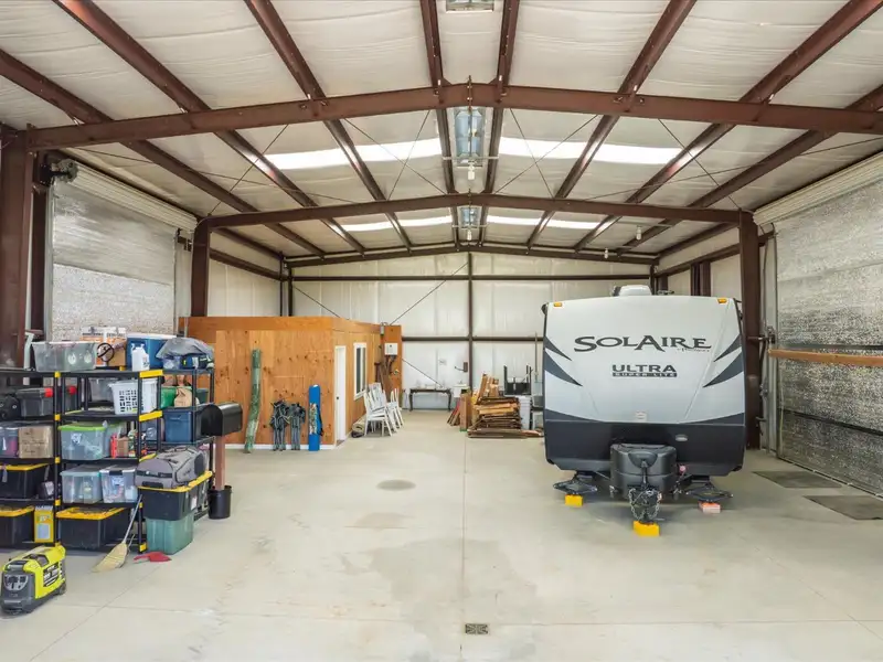 - Large barn with office and multiple roll-up doors