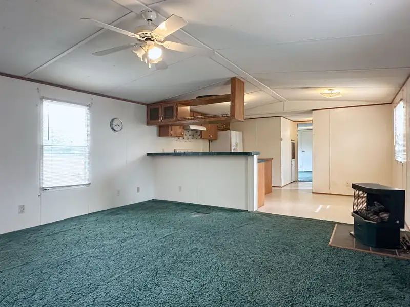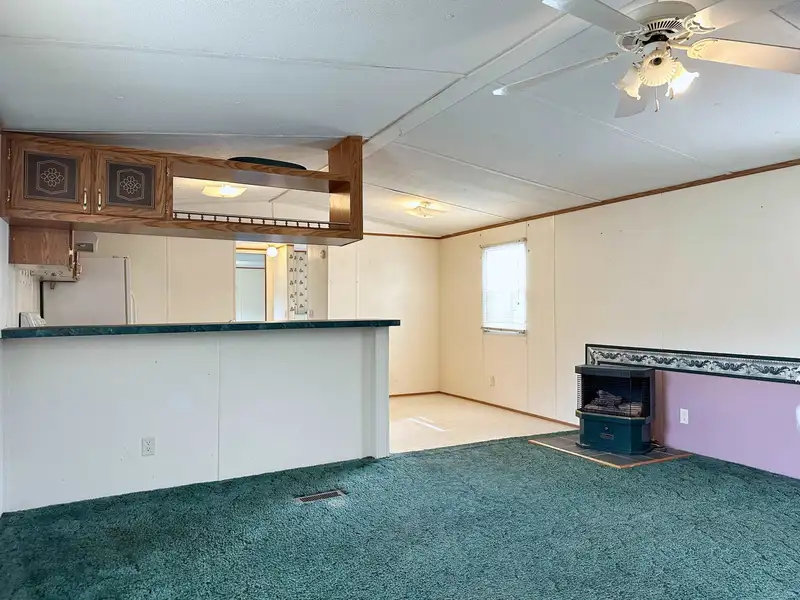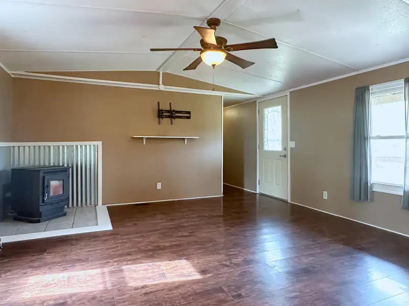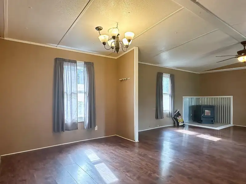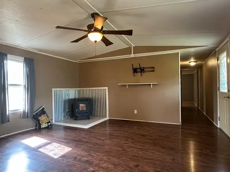 - Wood pellet stove in living room
