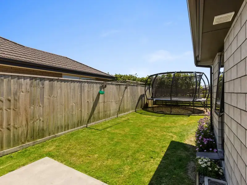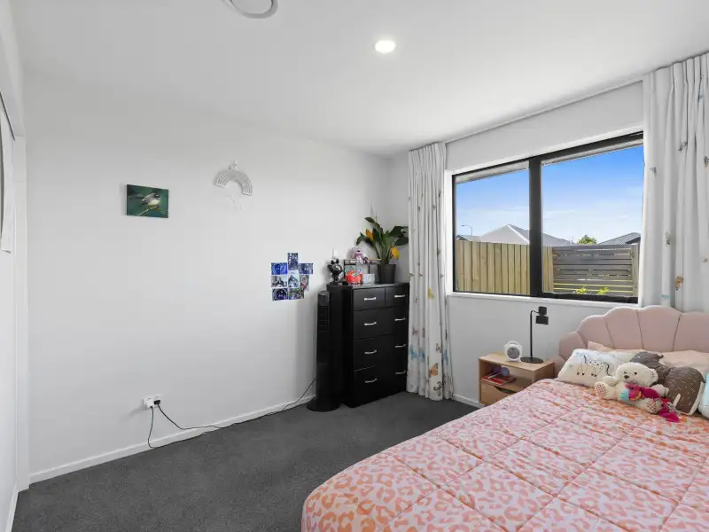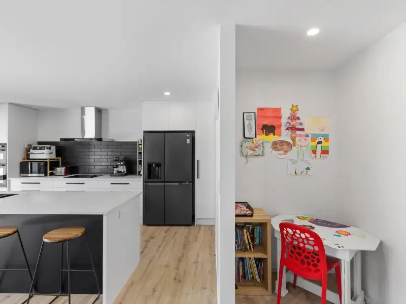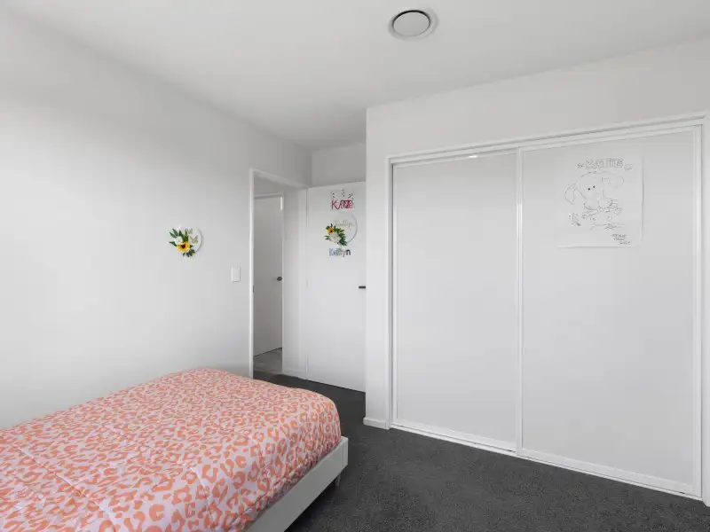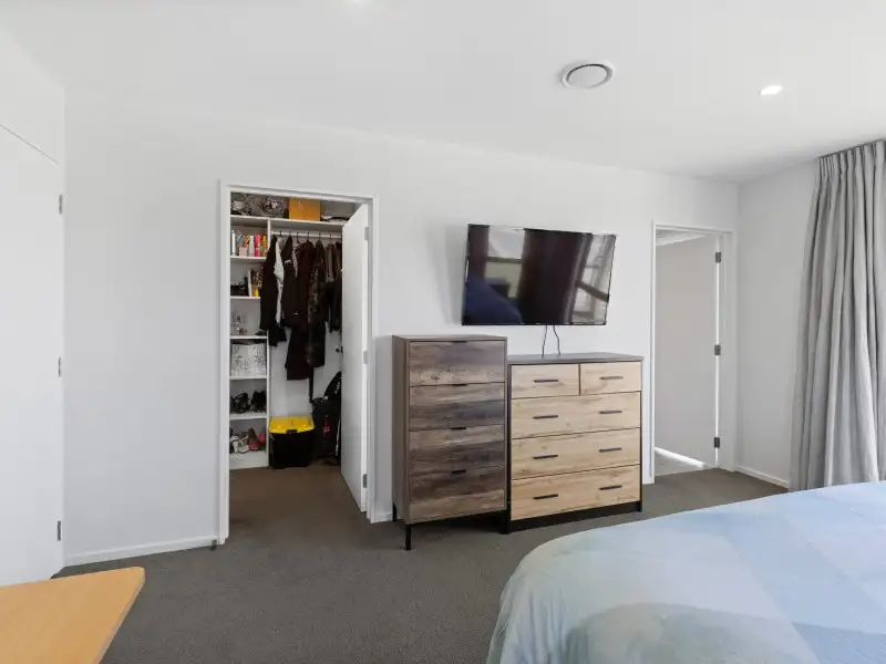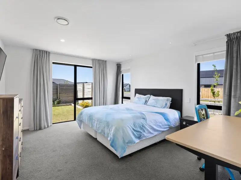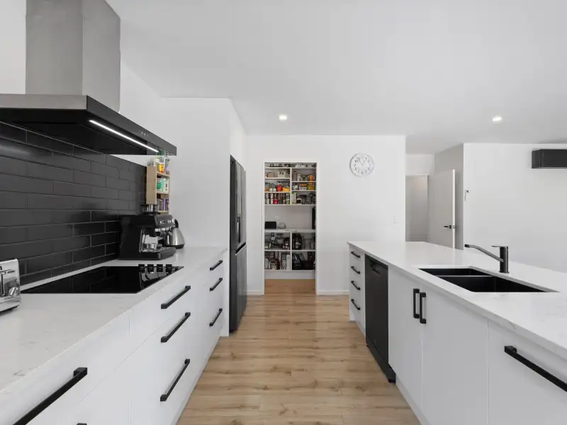 Stylish and spacious, with an open-plan living area that flows through triple sliders to a sunny patio. The kitchen is a highlight: engineered stone benchtops, walk-in pantry, double sinks with insinkerator, and double oven setup. The master suite features a walk-in wardrobe and dual-shower ensuite, while the main bathroom has both bath and shower. Added extras include a study nook, excellent storage, double internal access car garage and year-round comfort via heat pump and Mitsubishi Lossnay system.