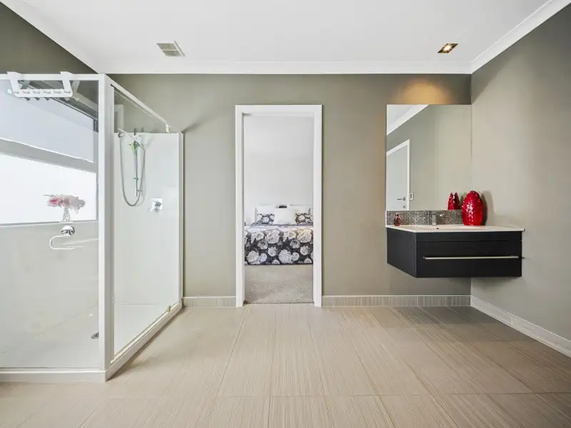 Cleverly zoned for privacy, the separate wing includes two bedrooms and a Jack and Jill bathroom - ideal for guests, teens, or extended family. The master suite is a true retreat, featuring a tiled ensuite with dual showers, double vanities, and private access to a courtyard spa.