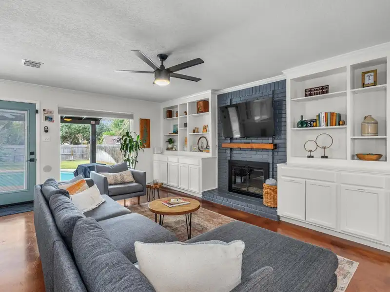 - Multiple living areas including fireplace room