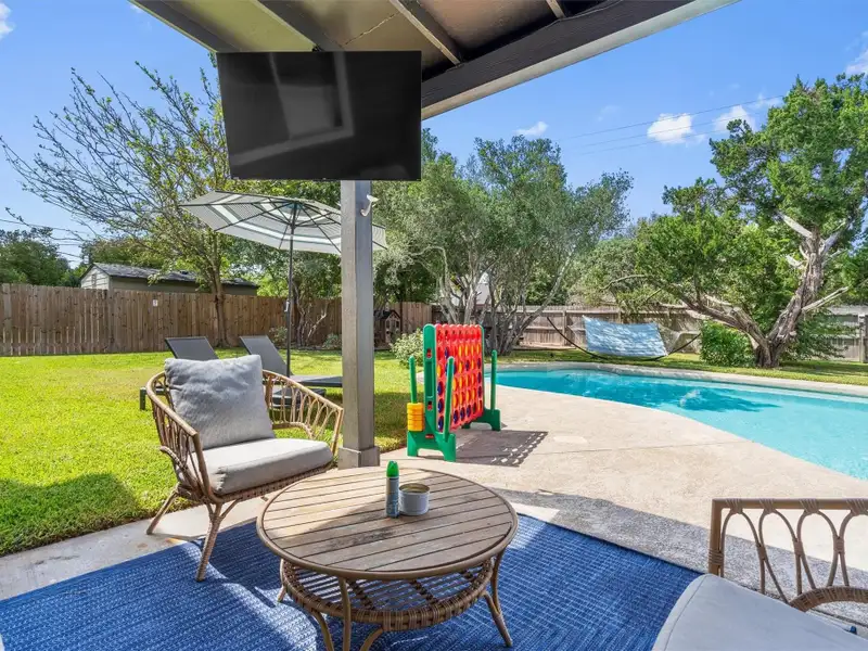 - Backyard pool with covered patio