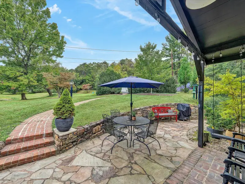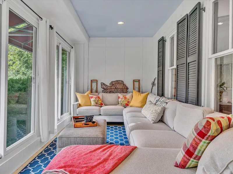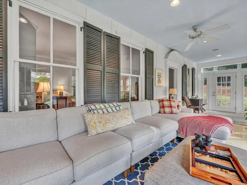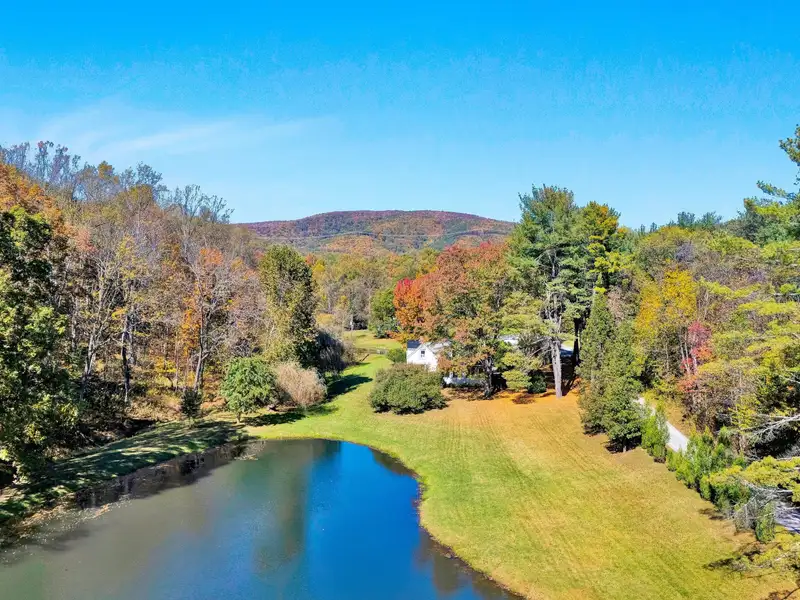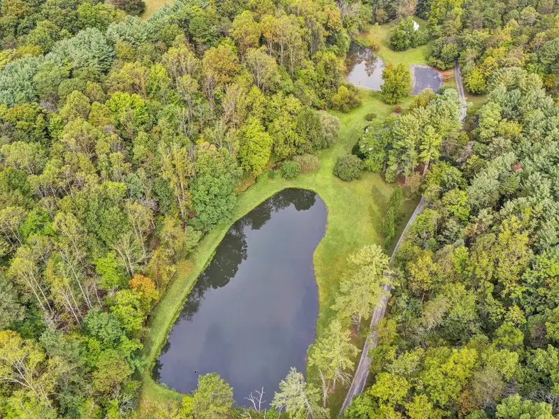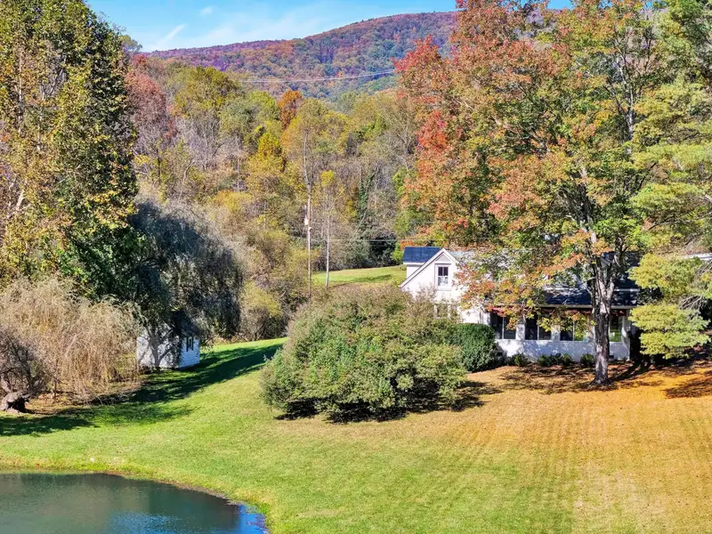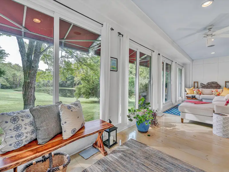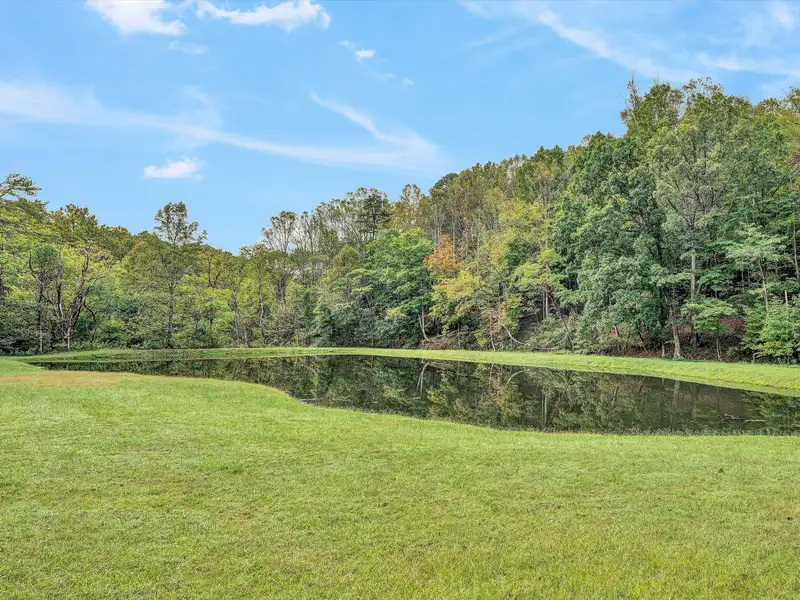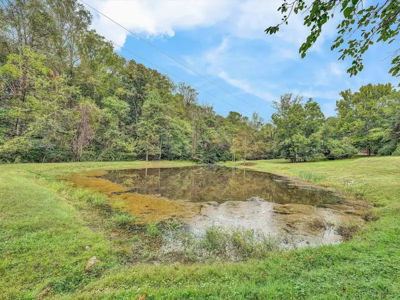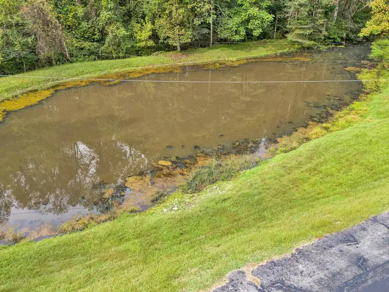 - Enclosed front porch overlooks stocked pond