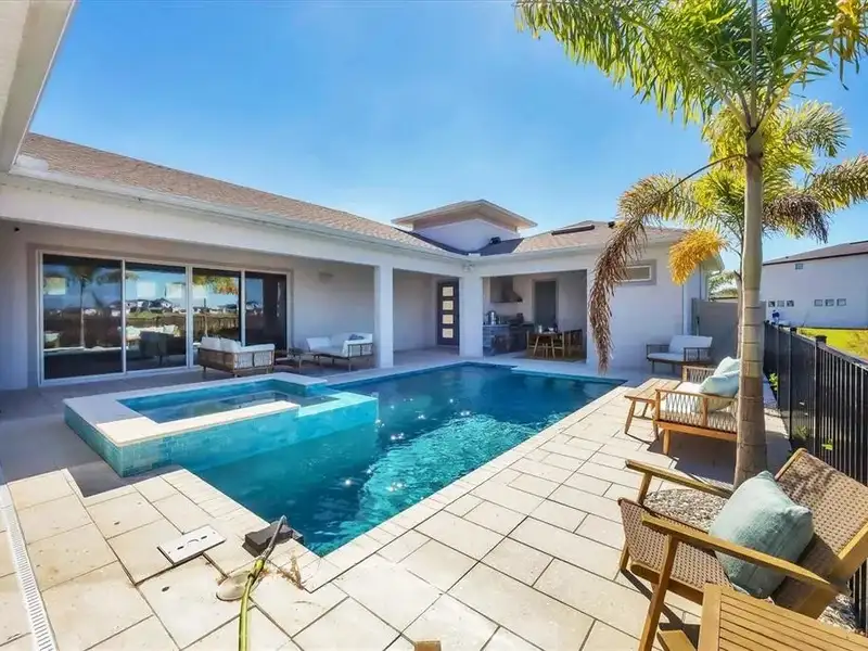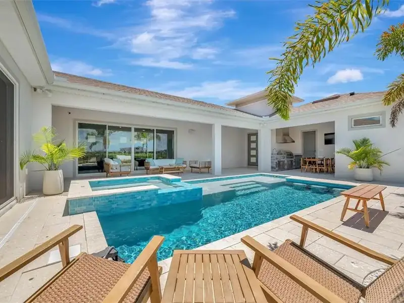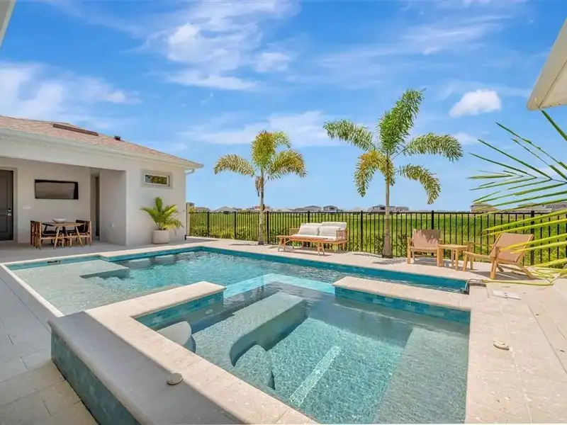 - Saltwater pool and spa with swim-up bar
