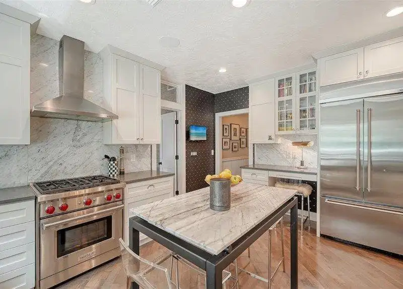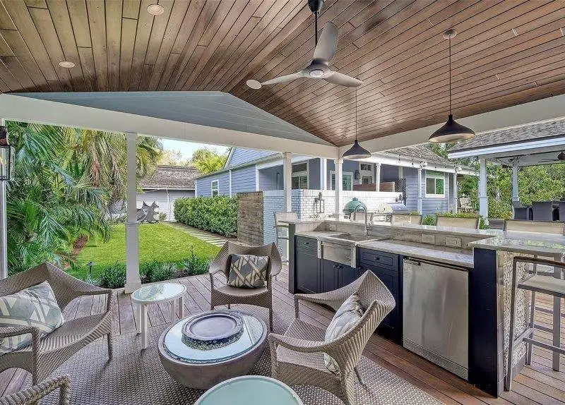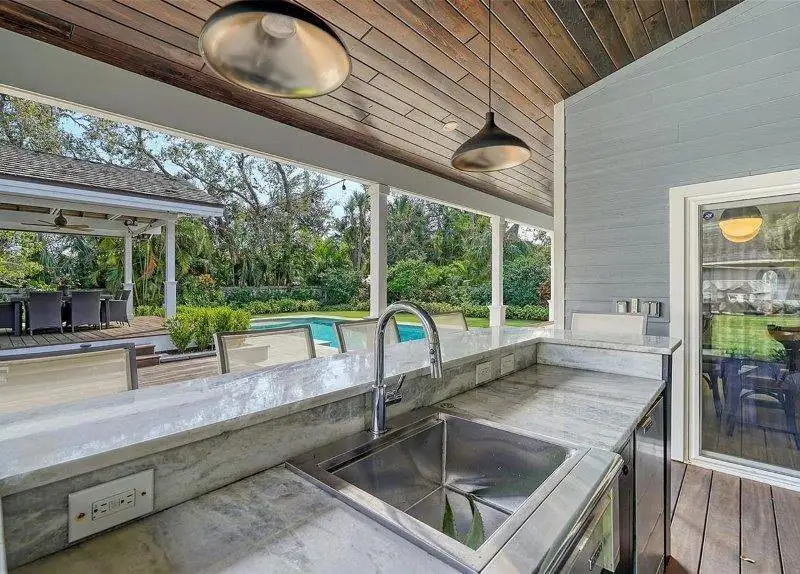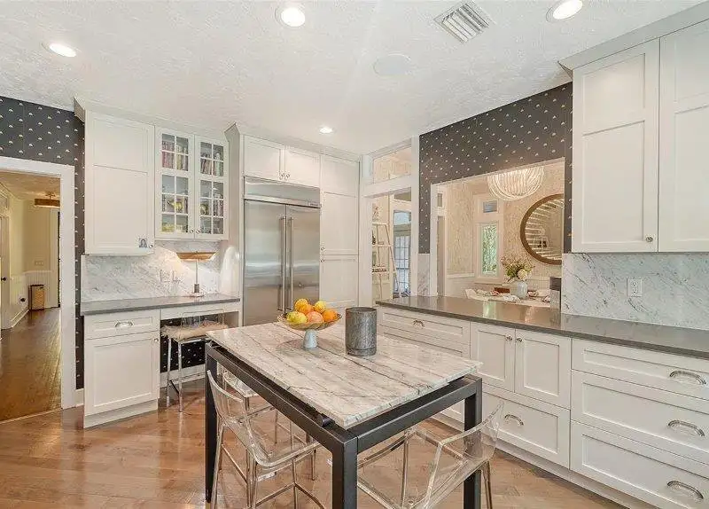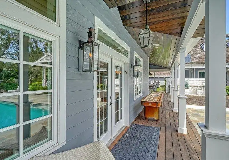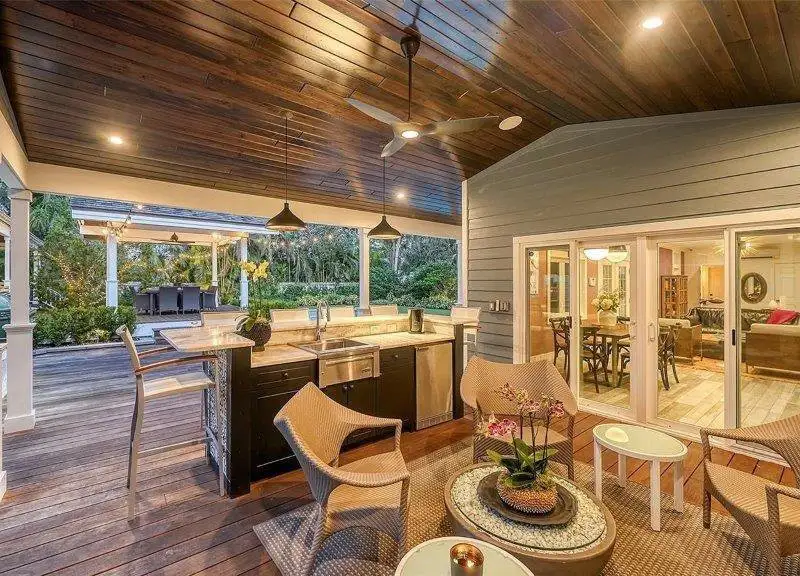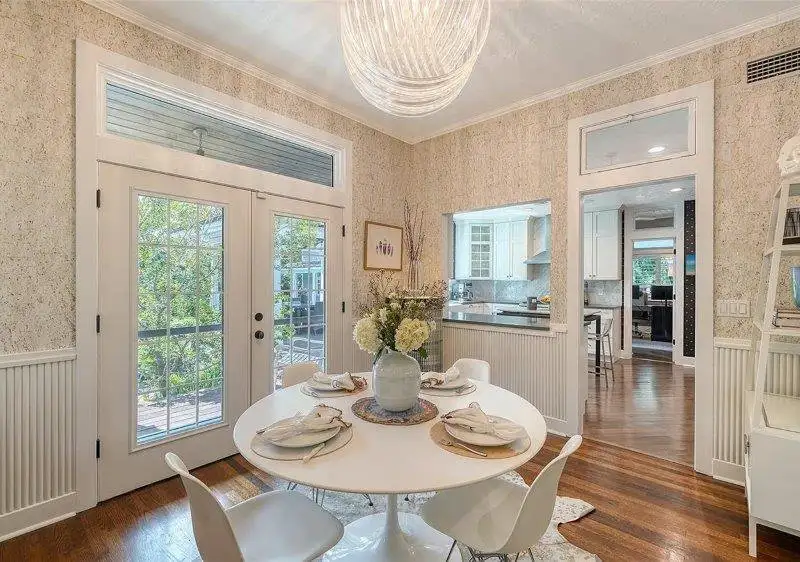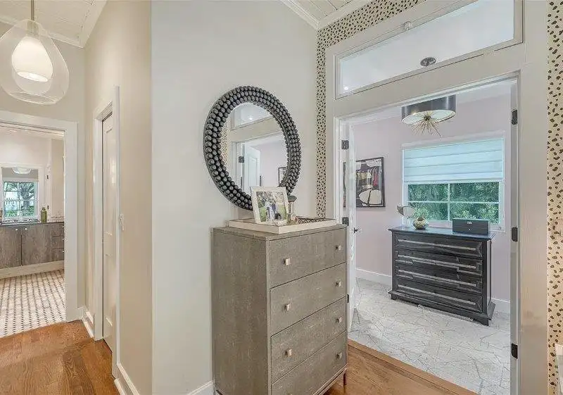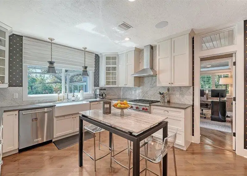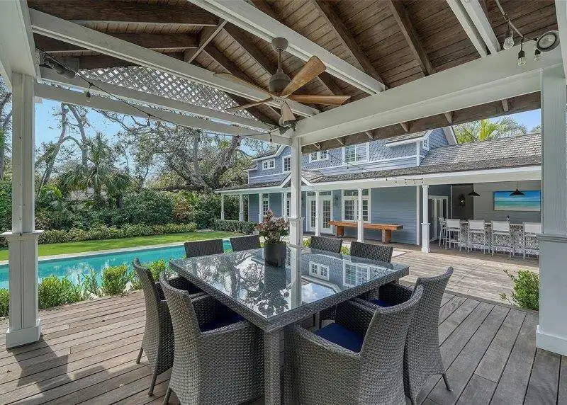 Welcome to this rarely available Cape Cod–style residence, comprised of a masterfully renovated main house and separate luxe guest house poised on an expansive 20,000 sq. ft. lot in Sarasota’s prestigious Cherokee Park. Elevated 23 feet above sea level and nestled on a wide, tree-lined street in the coveted West of Trail district—within the top-rated Southside school zone—this 4-bedroom, 3 full/2 half bath +office private compound blends timeless architecture with designer-curated sophistication. A stately front porch framed by lush landscaping and classic brick walkway introduces the home with understated grandeur. Handcrafted, glass-inlaid iron double doors open to a refined foyer where natural light, elegant millwork, and soaring 10-foot ceilings set the tone for the bespoke interiors beyond. Inside, original hardwood floors, designer lighting by Arteriors, Eichholtz, and Kelly Wearstler, and high-end finishes selected by Chelsea Dunbar of Blu Interiors create a sense of warmth and refinement throughout. The quartz-clad chef’s kitchen is as functional as it is beautiful, featuring a Wolf natural gas range, KitchenAid French-door refrigerator, ample pantry space, and custom cabinetry—perfectly suited for both intimate dining and entertaining. Anchored by a wood-burning fireplace, the main living and dining spaces flow seamlessly outdoors to an inviting Pennsylvania bluestone patio, low-maintenance Astroturf lawn, and wrap-around Brazilian teak deck—an idyllic setting for year-round enjoyment. The serene first floor primary suite is a private retreat showcasing three custom-designed walk-in closets and a spa-inspired bath with marble finishes, dual vanities, heated towel bar, and a zero-entry shower with body sprays. Ascend the custom staircase to find 2 tailored guest retreats with spa-like bath, each offering serene views and thoughtfully appointed details for ultimate comfort and privacy. Throughout the home, custom wallcoverings by Phillip Jeffries, Scalamandré, and Élitis add layers of texture and artistry, while upgraded systems—including a surround sound system, six climate zones, and multiple laundry areas—enhance everyday comfort. Resort-style living continues outdoors with a 9-foot-deep pool framed by classic Bevolo gas lanterns and an extraordinary luxury guest house built in 2016. This refined space includes an entertaining area with custom built-ins, full bar, refrigerator drawers, Scotsman icemaker, private guest suite, 1.5 baths, gym, and an outdoor teak shower. The fully equipped outdoor kitchen features a natural gas Lynx grill, XL Green Egg, quartzite prep counters, and a covered gazebo ideal for al fresco dining. All impact doors and windows, cedar shake roof, and Hardie Board siding add to the beauty and durability of the home. Completing this exceptional estate is an oversized 2.5-car detached garage and secure, fully fenced grounds with electric fence. Enjoy tree-lined streets with sidewalks and a true sense of community, all just a short stroll or golf cart ride to Southside Village where residents enjoy boutique shops, Morton’s Gourmet Market, cafés, and top-rated restaurants, and minutes from downtown Sarasota and Siesta Key Beach. This is refined Gulf Coast living—where timeless architecture meets effortless luxury in one of Sarasota’s most treasured neighborhoods.