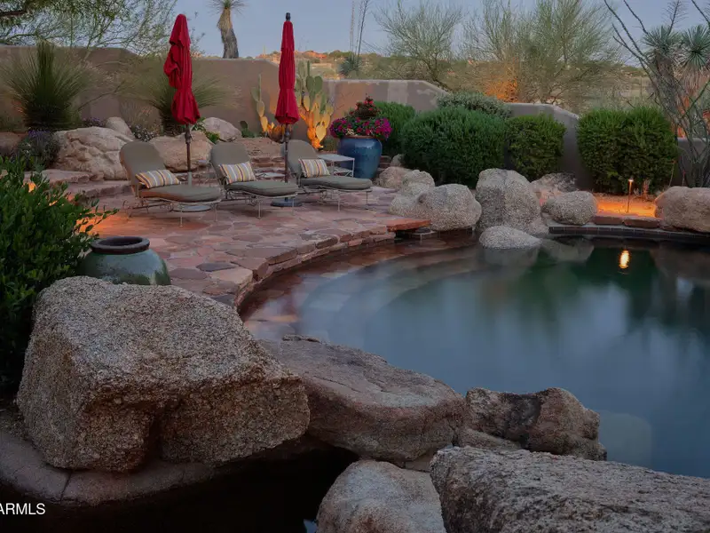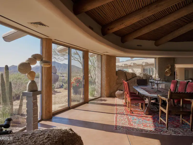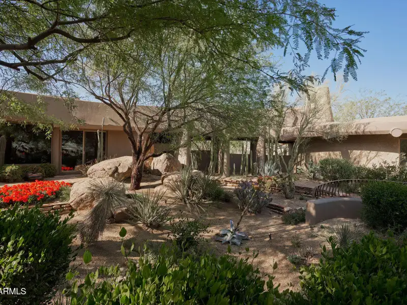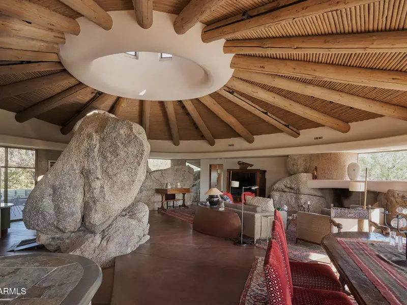 Architect Ron Brissette, former student of Frank Lloyd Wright captured Southwest magic when he created ''Las Rocas.'' Situated on 3 lots spanning 1.8 acres, gorgeous views of the Cochise golf course and city skyline generously lend their beauty. The 5,704 sqft main home is an entertainer's dream while the 1,280 sqft 2 bedroom casita is well-suited for multi-generational living or guests. The main living area features a dome skylight that allows the sun to gently land upon the strong granite boulders. Mahogany doors and Vigas & Latillas hemlock beams compliment the natural elements beautifully. Stunning outdoor landscape was designed by award-winner Donna Winters of Enchanted Garden Landscape. In addition, this home offers a rare opportunity to enjoy a Desert Mountain Lifestyle membership.