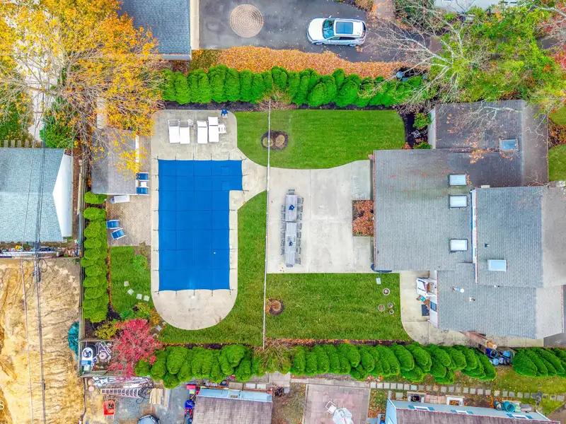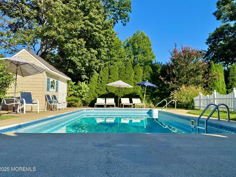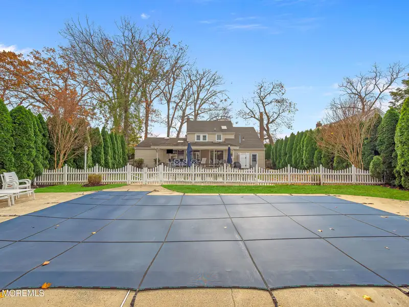 - Expansive covered deck with pool view