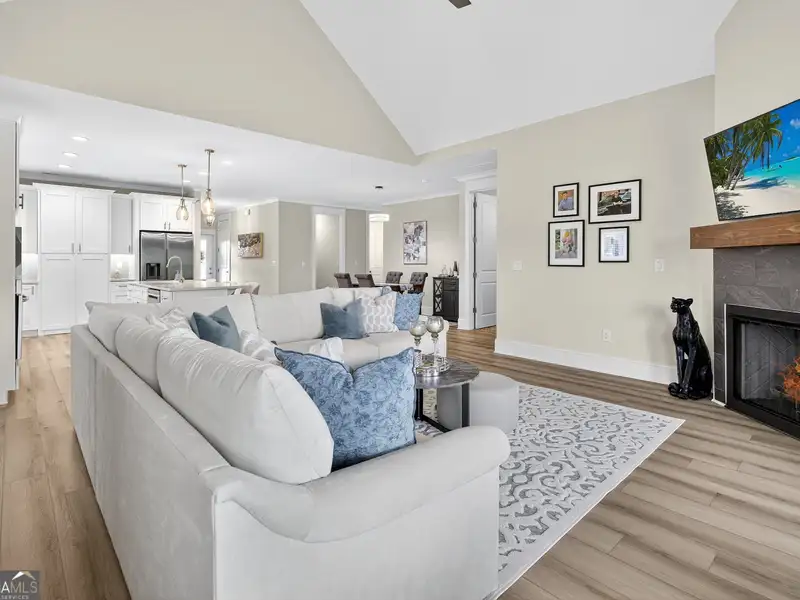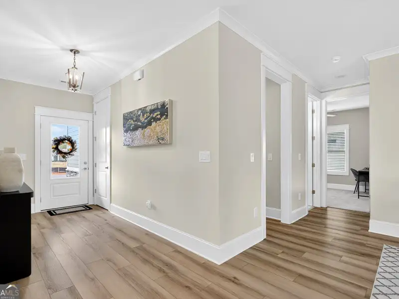 Welcome to this exceptional 3-bedroom, 2-bathroom home that redefines modern living in the charming community of Senoia. This better-than-new residence offers you the rare opportunity to enjoy a pristine property w/all the conveniences of contemporary design in a town that perfectly captures the essence of authentic Georgia small-town living. Step inside to discover a thoughtfully crafted interior featuring stunning quartz countertops that gleam throughout the kitchen, while beautiful luxury flooring offers a warm, contemporary feel that blends w/the home's elegant design features perfectly. The thoughtfully designed kitchen showcases a complete suite of stainless steel appliances, perfectly complementing the sleek aesthetic while providing the functionality today's homeowners demand. The real showstopper is the ingenious hidden walk-in pantry, a clever design element that maximizes storage while maintaining clean lines throughout the living space. Cozy evenings await by the ventless fireplace in your spacious great room, where you can unwind without the hassle of traditional chimney maintenance. The home's efficiency continues w/a tankless water heater, ensuring endless hot water while conserving energy and space.The home's gorgeous upgrades elevate every space, creating an environment that feels both luxurious and livable. Every detail has been carefully considered, from the premium finishes to the smart layout that maximizes both comfort & functionality. This is especially prominent in the primary suite where plush carpeting leads you to your own personal retreat of comfortable, quiet tranquility. In the en suite you will find sophisticated tile work & quartz counter tops that creates visual interest & timeless elegance. Strategic lighting design bathes the space in warm, flattering illumination. Thoughtfully designed storage solutions keep essentials organized while maintaining the serene, uncluttered aesthetic. Luxury finishes and premium hardware add refined touches that transform daily rituals into moments of indulgence. Every element works harmoniously to create an atmosphere reminiscent of a high-end spa, offering a private escape where you can truly unwind. Practical considerations haven't been overlooked either. The dedicated golf cart storage acknowledges the local lifestyle, while the HOA takes care of lawn maintenance, freeing up your time for more enjoyable pursuits. This attention to convenience extends throughout the property, making daily life effortlessly comfortable. Located in the delightful town of Senoia, this home puts you w/in easy reach of local attractions & amenities while immersing you in one of Georgia's most fascinating communities. Senoia has gained international recognition as a premier filming location, serving as the backdrop for the hit television series The Walking Dead and numerous major motion pictures. Despite its Hollywood connections, this authentic Georgia town has masterfully maintained its historic character & genuine small-town warmth. The community embraces its entertainment industry fame while preserving the welcoming, neighborly atmosphere that makes Senoia truly special. Visitors & residents alike appreciate how the town balances its celebrity status w/its commitment to authentic Southern hospitality & small-town values. Historic Main Street, less than a mile away, offers unique shopping & dining experiences that capture the area's genuine southern charm & rich heritage. Daily conveniences are equally accessible, w/Publix Super Market at Senoia Village nearby for all your grocery needs. This residence represents more than just a house; it's a gateway to a coveted lifestyle in one of the area's most charming towns! Don't miss this opportunity to own this exceptional home in one of Georgia's most sought-after communities, where quality construction, thoughtful design, authentic small-town charm, & prime location converge to create the perfect living environment.