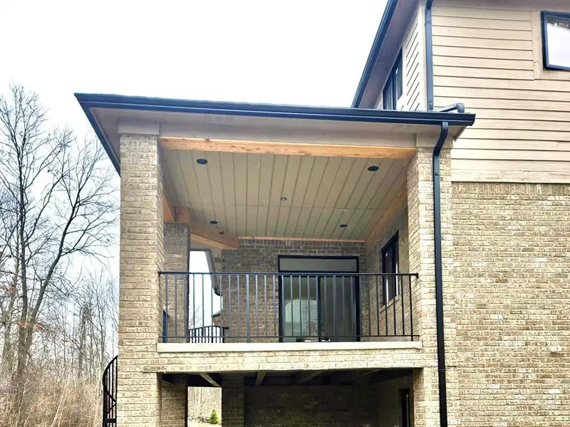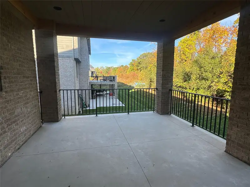 - Covered loggia with spiral staircase outdoors