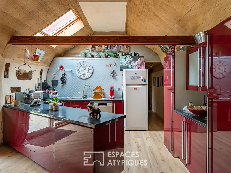Nestled in the unspoiled village of Sonchamp is a visionary house built in 2009, the first residence in the Yvelines region to be built on straw bale walls, patinated with natural clay.