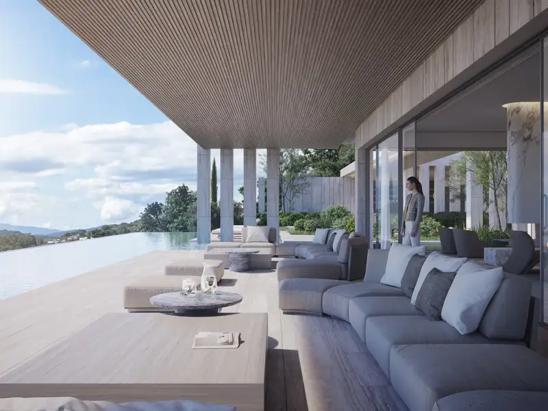 Nestled in the heart of The Fifteen, the most private and elevated community of La Reserva de Sotogrande, this extraordinary residence represents the perfect synthesis between architectural elegance, nature and absolute comfort. With south orientation and open views to the Mediterranean Sea, the golf course of La Reserva, the Real Club de Golf Sotogrande and the Rock of Gibraltar, this property has been designed to enjoy the natural beauty of the surroundings from every corner of the house. Distributed on two floors and with more than 2,300 m2 built on a plot of 4,447 m2, this villa offers a life experience without concessions. It has seven bedrooms — including a master suite with panoramic views and private dressing room—, nine bathrooms, spacious open concept living areas, design kitchen with marble island, indoor and outdoor dining area, cellar, gym, office and a spectacular spa area with heated indoor pool and relaxation areas. All this articulated through bioclimatic patios that provide light, natural ventilation and constant connection with the landscape. Natural materials — such as travertine stone, solid wood and noble marbles — have been carefully selected to provide each space with a serene and timeless atmosphere. The architecture melts with the terrain through Mediterranean gardens with native vegetation and an infinity outdoor pool that seems to float on the horizon. The advanced automation system allows you to control air conditioning, lighting, audio and access from any device, ensuring maximum comfort and energy efficiency. In addition, housing has been conceived under sustainability criteria, with technologies such as aerotermia, photovoltaic energy and passive solutions that ensure constant internal temperature all year round, minimizing environmental impact. Located in a gated community with 24-hour surveillance and exclusive access, this property guarantees total privacy and absolute tranquility, in an enclave surrounded by nature, security and premium services. A few minutes away are the prestigious golf clubs, the international school, the marina, the Beach Club and the high-level sports facilities that make Sotogrande one of the most sought after residential destinations in Europe. A residence that is not only inhabited, but is experienced. A home where architecture celebrates light, silence and nature.