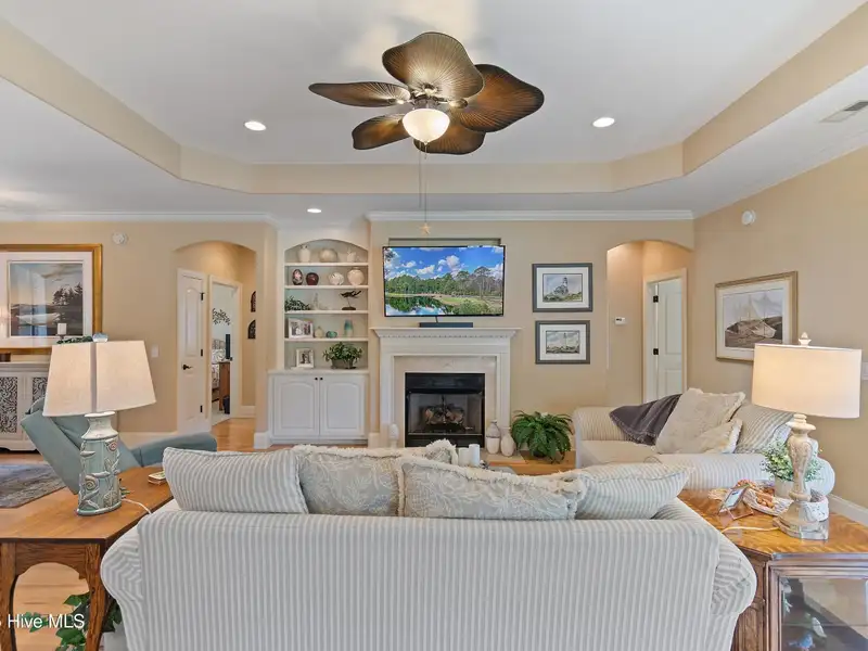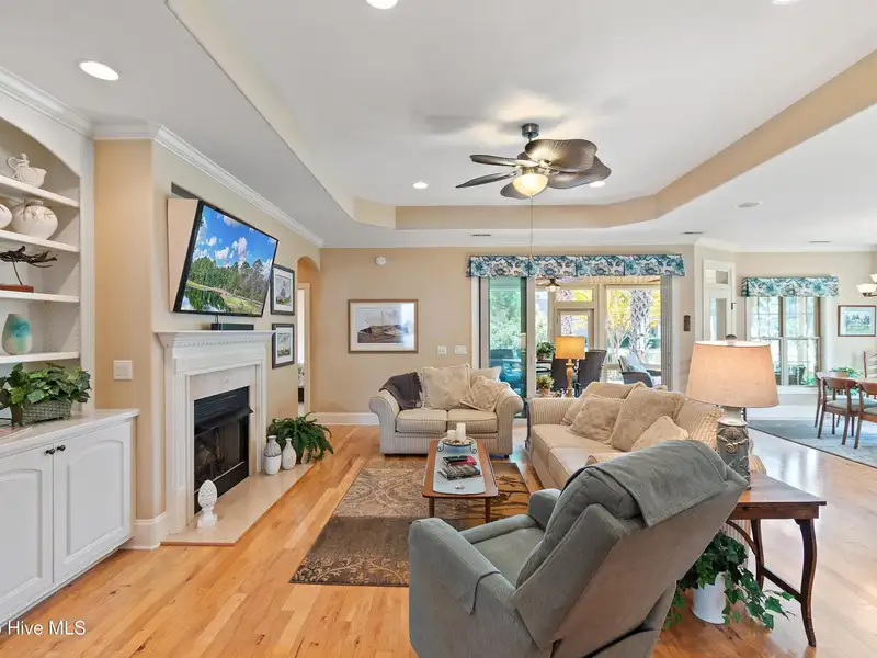 - Open living room with fireplace