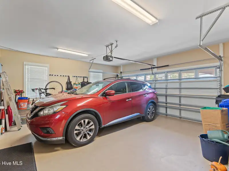 - Garage with epoxy floors and storage room