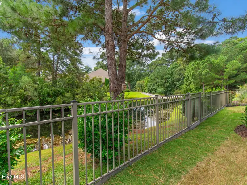 - Fenced yard with pond views