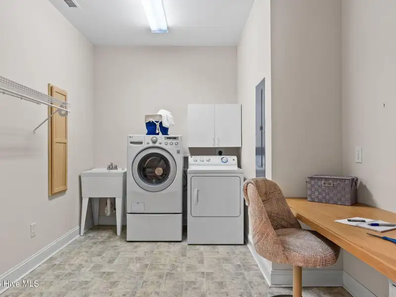 - Oversized two-car garage with utility sink