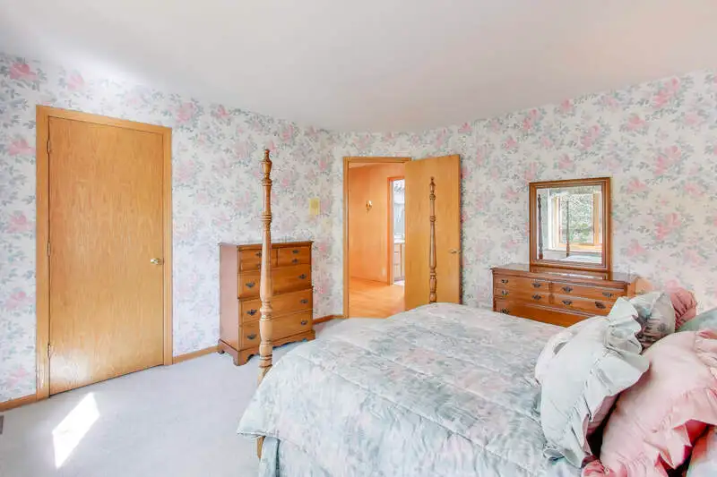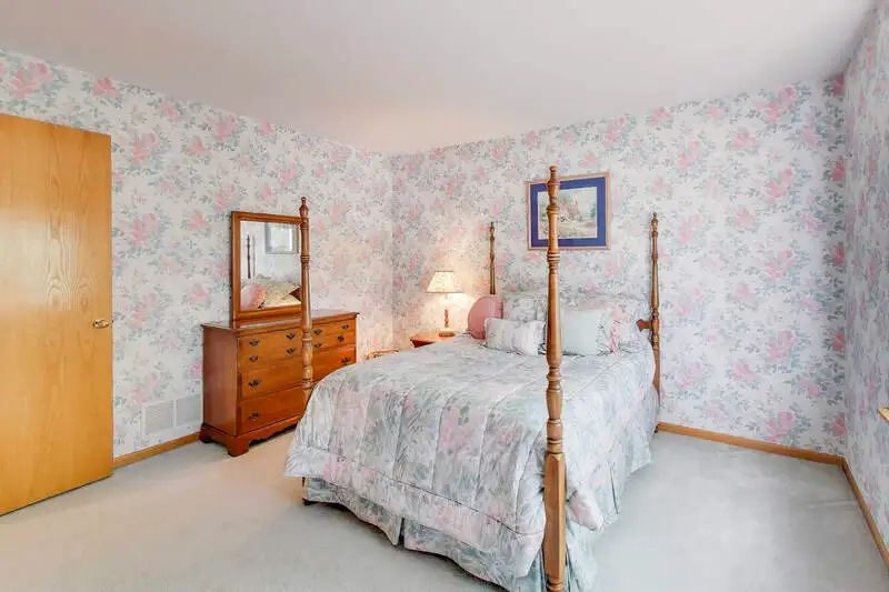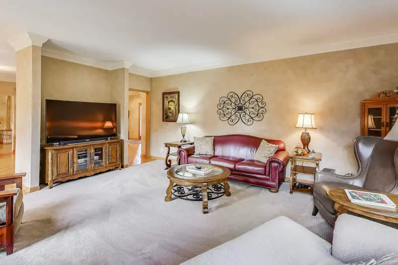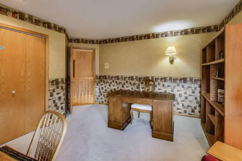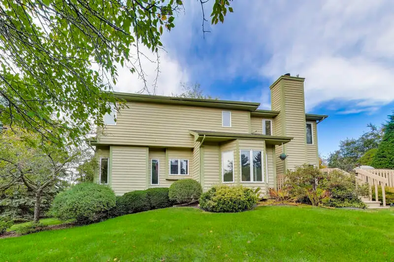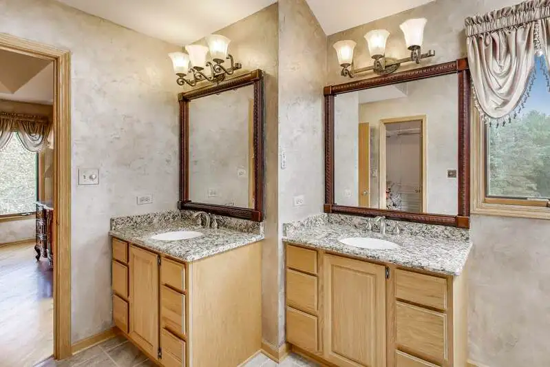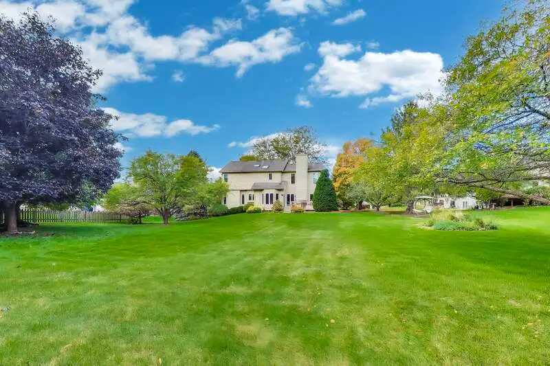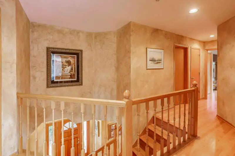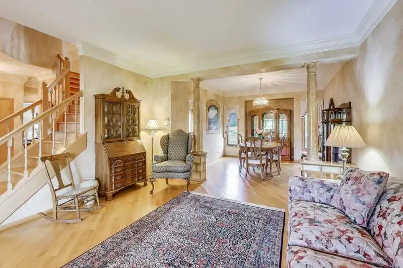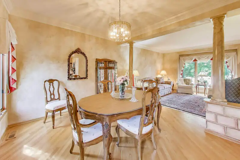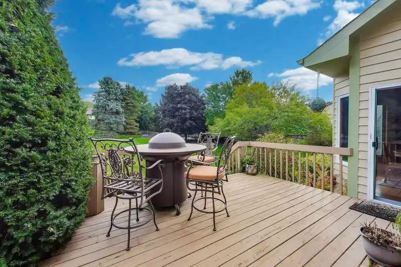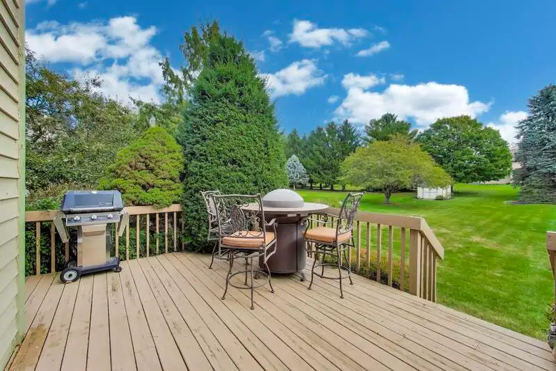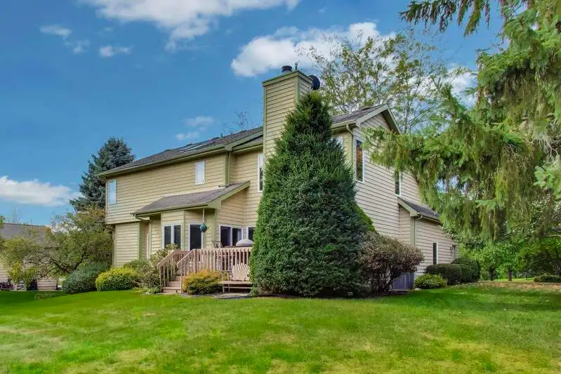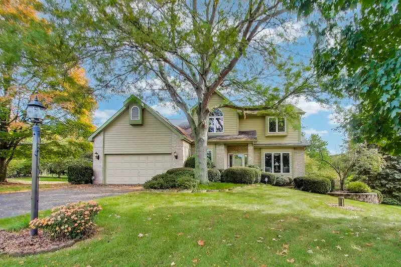 Nestled on a quiet cul-de-sac in highly sought-after Oak Valley Estates, this stunning former builder's model perfectly blends timeless elegance with everyday functionality. From the moment you step inside, you're welcomed by gleaming hardwood floors, a custom oak staircase, and rich crown molding that enhances the 9-foot ceilings throughout the main level. The formal living and dining rooms set the stage for elegant entertaining, while the spacious eat-in kitchen offers 42-inch cabinets, granite countertops, under-cabinet lighting, a deep Kohler cast iron sink, and stainless-steel Maytag and Bosch appliances. A stylish backsplash and custom drapes complete the look. The kitchen flows seamlessly into the inviting family room featuring new carpet, a gas fireplace, a built-in TV niche, and custom blinds-creating the perfect space for everyday relaxation and gatherings. Step through the sliders to your private outdoor oasis, complete with a large deck, in-ground pool equipped with volleyball and basketball. A shed keeps pool equipment neatly stored, while the automatic indoor control panel allows you to manage the pool's settings right from inside your home. The natural gas line to the firepit and grill makes outdoor entertaining effortless, and the in-ground sprinkler system ensures your landscaping remains lush all season long. Upstairs, the luxurious primary suite impresses with a tray ceiling, hardwood floors, dual closets plus a spacious walk-in with custom organizers, and a spa-style bath boasting a vaulted ceiling, skylight, dual vanities, soaking tub and separate shower with full body sprays and rain dome. Three additional generous bedrooms-including one with a vaulted ceiling-and a full bath with skylight complete the upper level. The English basement provides 9-foot ceilings, daylight windows, a workbench area, and is stubbed for a future bathroom, offering endless possibilities for additional living space and storage. Custom window coverings and thoughtful design details carry throughout. Modern updates and mechanical highlights include a Lennox high-efficiency furnace, Culligan water softener, reverse osmosis system, central vacuum with tools, and dimmer switches in key living areas. One-third of the home's windows have been replaced for added efficiency and comfort. The garage is fully drywalled and trimmed, with mounted wall storage units and a convenient service door. This home has been meticulously maintained and thoughtfully designed for modern living and entertaining. Enjoy neighborhood amenities including a park, and easy access to the village walking path and award-winning schools, Minutes away from Lake Geneva, the Chain O'Lakes, and both O'Hare and Milwaukee airports. Welcome home-where comfort, quality, and convenience meet in perfect harmony!