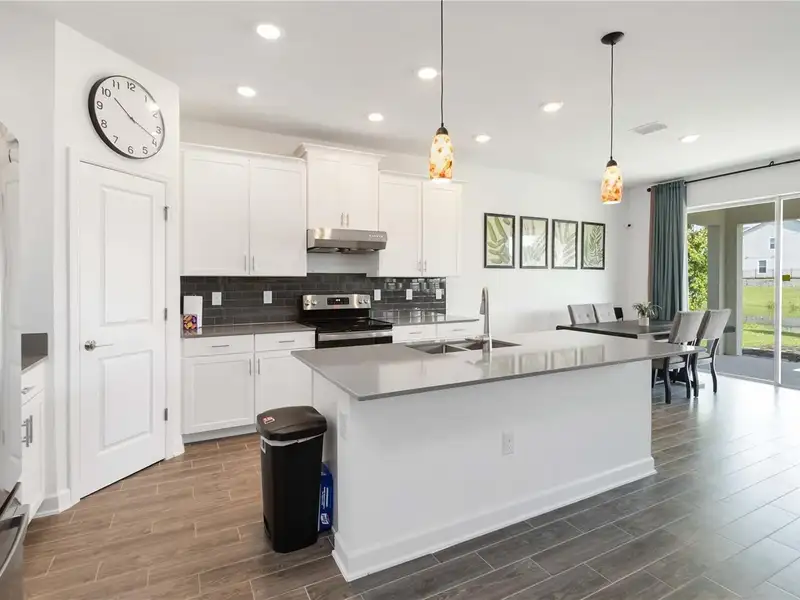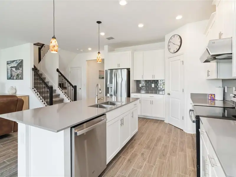 - Quartz countertops in kitchen