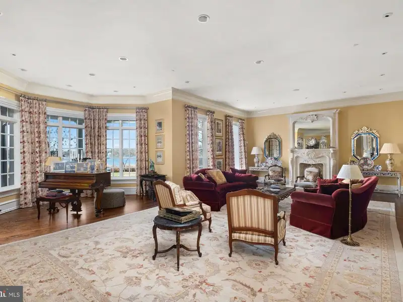 NEW PRICE! Located minutes from downtown St. Michaels, Aqua Vitae the waters of life, sits on 8.6 private acres on Harris Creek, a Chesapeake Bay tributary. This custom-built offering w/ over 400 of direct water frontage is comprised of 3 magnificent structures: a grand main residence, guest cottage, & party barn all highlighted by a waterside pool, pier w/ 4 MLW, pine grove, putting green, extensive landscaping & incomparable craftmanship. The 12,000 SF main residence, positioned to prioritize water views, welcomes you via prominent double lead-glass doors & a grand 3-story foyer w/ dual-staircase. The river room w/ 2-story octagon copula offers 270 views of the property & creek. The TV room w/ 3 exposures & gas-burning fireplace offers double French doors on two sides leading to the wrap-around flagstone patio. The stunning gourmet kitchen is a true chefs dream. Offering oversized island, built-in media/storage cabinet, coffered ceiling, fireplace, 3 sinks, double Subzero fridges w/ freezer drawers, 2 beverage drawers, 3 dishwashers, Wolf microwave & a stainless-steel Lacanche range with 6-burners, pot warmer, warming oven, & 2 ovens. Complimenting the kitchen is a large walk-in pantry w/ dishwasher, sink & extra freezer in hall. Off the kitchen is a covered porch w/ gas fireplace & ghost screens, a perfect spot to enjoy evenings. A large open dining room has 2 custom built-in display cases. The grand salon w/ bay window, gas-fireplace & intricate mantel is reminiscent of Paris. Adjoining the salon is the handsome 2-story curly cherrywood library w/ custom display cases & leaded-glass pocket doors. The adjoining climate-controlled wine room has a wet bar & storage for 750+ bottles. Wood floors flow throughout the entire main level. The main level is completed by an office, powder room & laundry to service the pool, 2 additional powder rooms, elevator to all 4 levels, mud/dog room, rear spiral staircase, guest suite w/ ensuite bathroom, & 2-car attached garage. The 2nd level offers a generous primary suite w/ fireplace & full length terrace overlooking the water. Her wing features dressing room w/ custom built-ins, separate sitting room, & a luxurious bathroom w/ marble tile, separate shower, jetted tub, & vanity. His wing offers an office w/ fireplace, paneled closet leading to separate bathroom w/ shower, travertine stone, & vanity. From his office access the 2nd level of library, open to below. Just off of the primary suite is a bar area/kitchen. 3 additional bedrooms, each w/ ensuite bathroom, and a laundry room complete the 2nd level. The 3rd level offers theater/rec room, play area, bedroom w/ ensuite bathroom, powder room, & ample storage. The lower-level houses utilities, storage, & enough room for an exercise area. The charming guest cottage sits amongst extensive landscaping. The main level offers a full kitchen, dining area, living room, sunroom, large family room, 2 bedrooms w/ shared bathroom, additional guest bathroom, & large entertaining room. Upstairs is a full bedroom w/ ensuite bathroom. The unfinished lower level offers storage. The party barn originally built for boat storage was designed to look like an old Pennsylvania barn w/ 4 of stone around the base. Flanked by 2 garage wings allowing for 4+ cars & capped w/ a cupola, the shingled-style barn has two large doors on either side of the building that allow for a trailered boat or 4+ more cars. The 2nd level is a loft w/ sleeping/living area w/ full bathroom, plumbed for potential kitchenette, front & rear terraces, & a spiral staircase to a crows nest w/ amazing views. There is a full property generator & a dog run w/ kennel just off the rear. Outside enjoy the benefits of beautiful shore living amongst the verdant grounds, mature landscaping & exceptional views. The pier offers 4 MLW & the shoreline is fully rip-rapped w/ natural plantings.