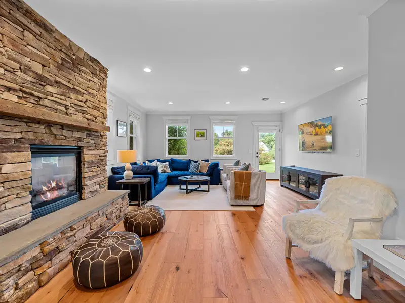 - Cozy living room with gas fireplace