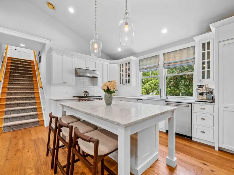 - Custom cabinetry and wine fridge