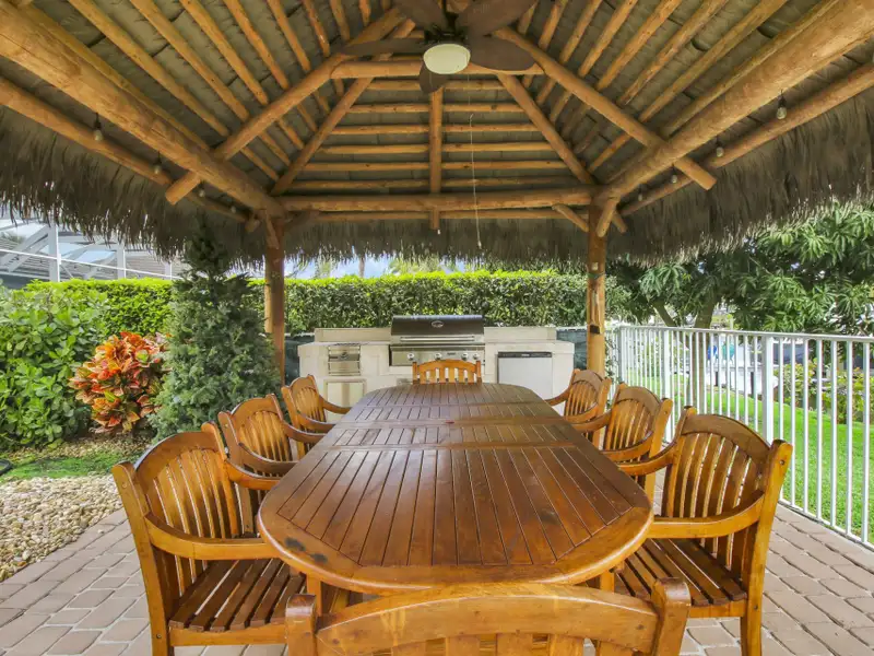 - Heated saltwater pool with Tiki Hut and outdoor kitchen