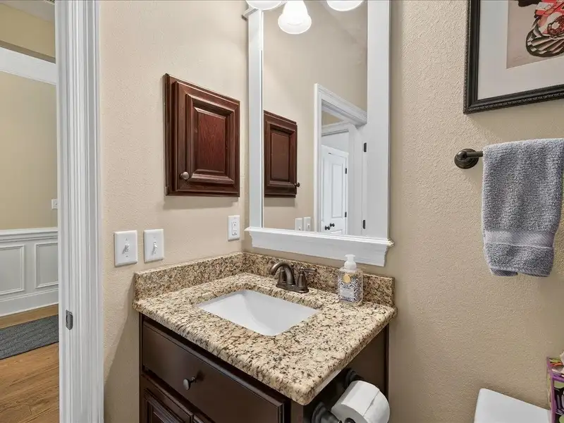 - Custom cabinetry with granite countertops