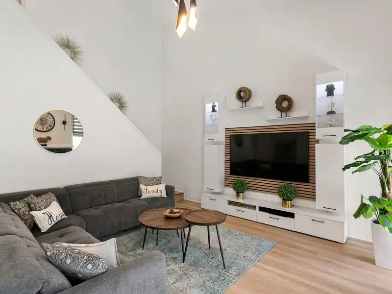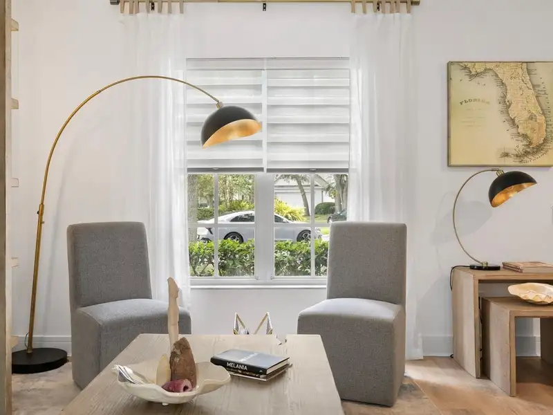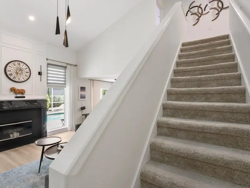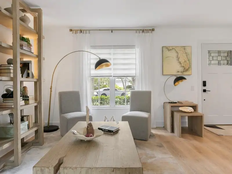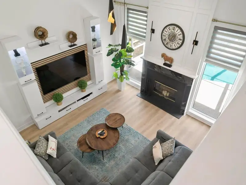 This all leads to a new front door that sets the tone for the modern elegance found inside. The first floor is completely remodeled with all new flooring, baseboards, paint, and decorative wood trim and LED modern light fixtures. It continues with a new back door slider and custom 9 foot energy-efficient windows facing a beautiful screened in lanai and pool area.