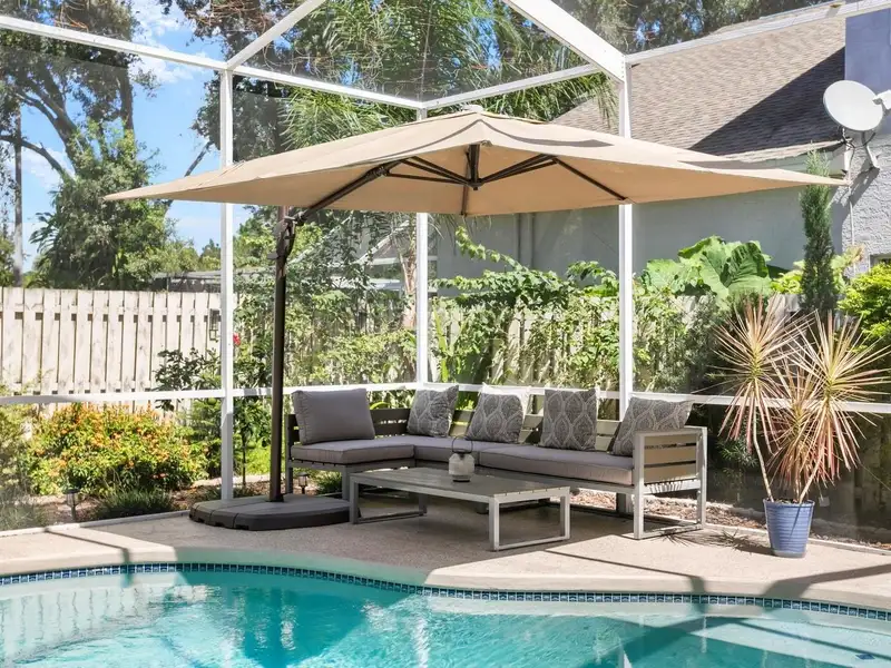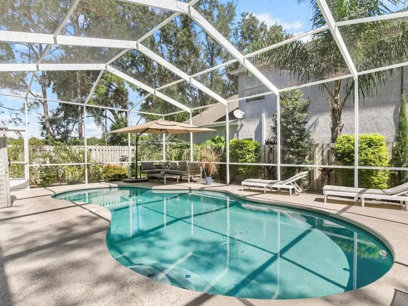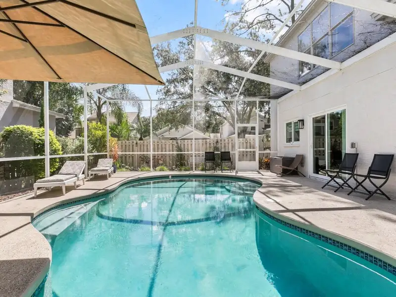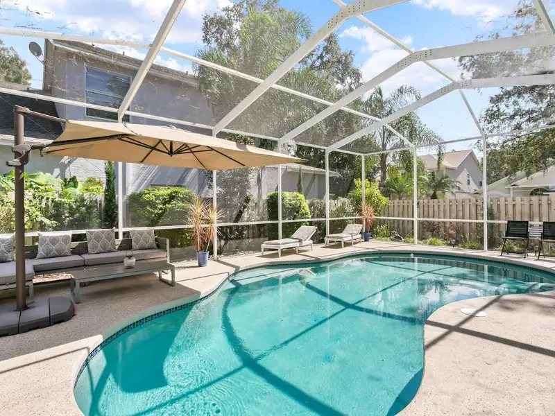 Step outside to a beautifully refinished pool and deck. The pool is accented by LED lighting and surrounded by lush landscaping for added privacy. With over $150,000 in thoughtful enhancements, this home is truly move-in ready and located in one of New Tampa’s most desirable gated communities.