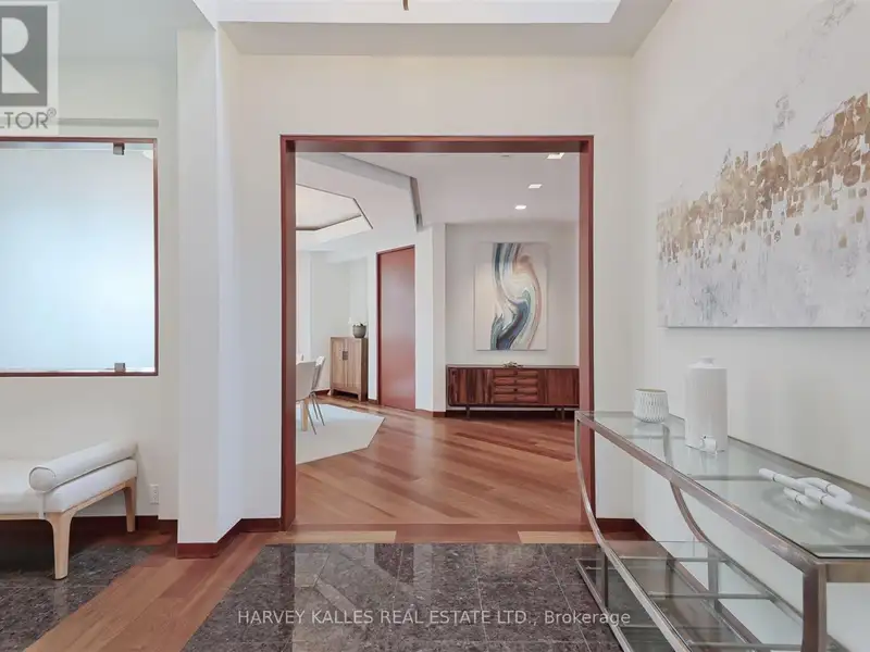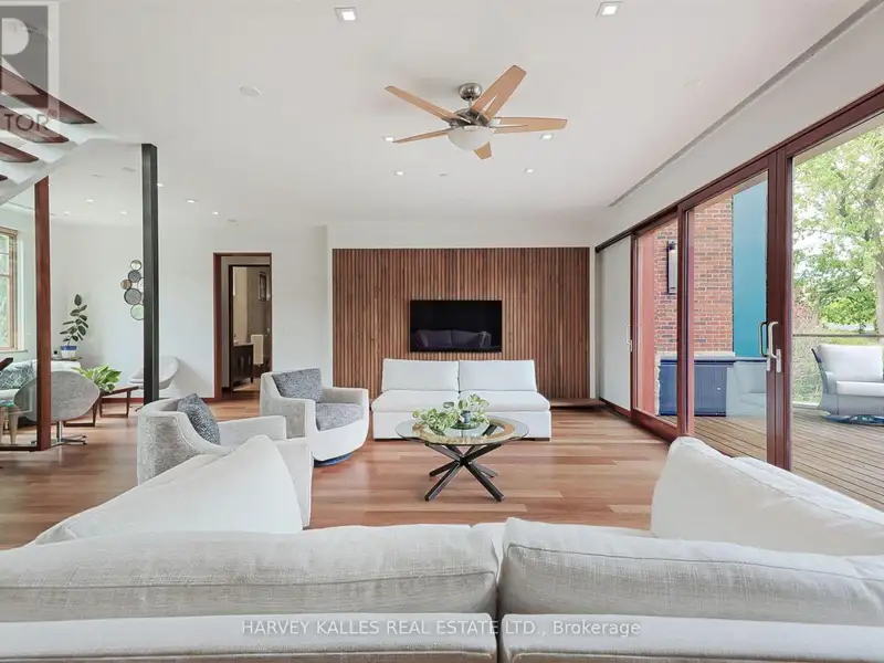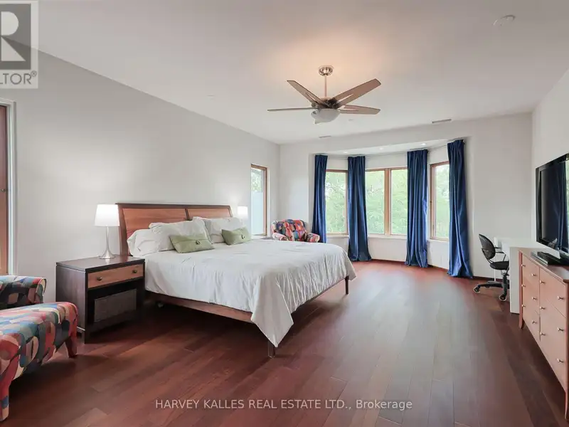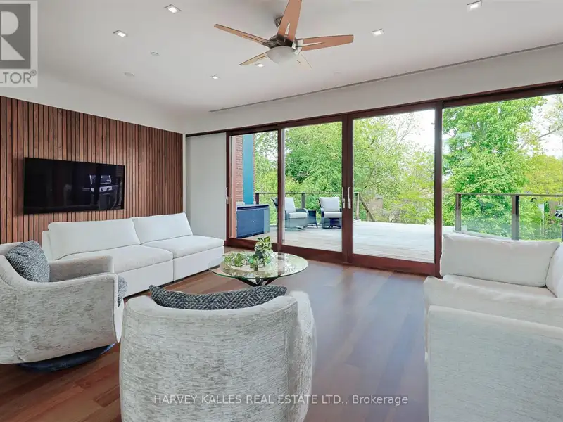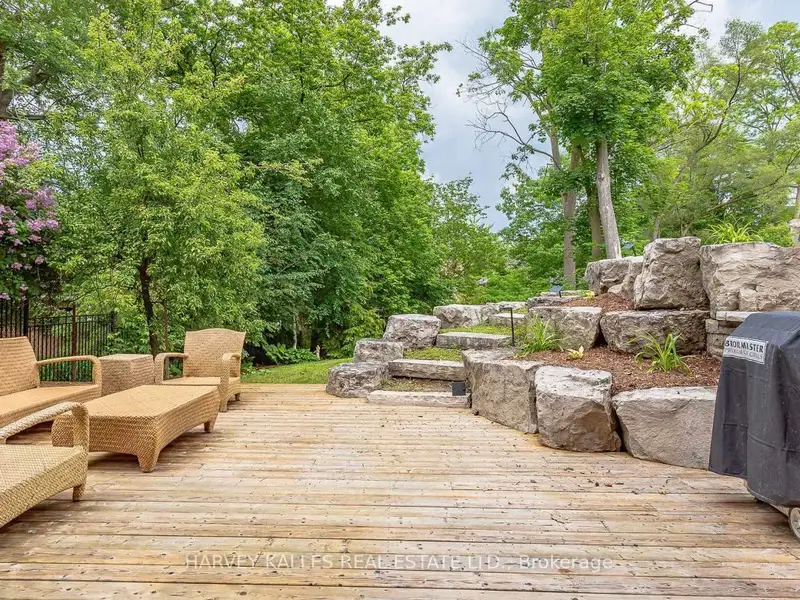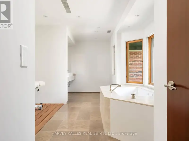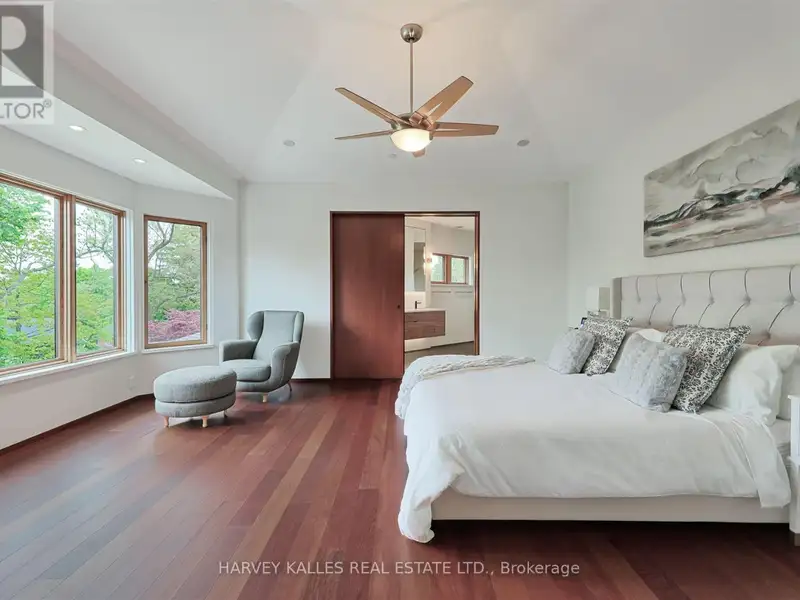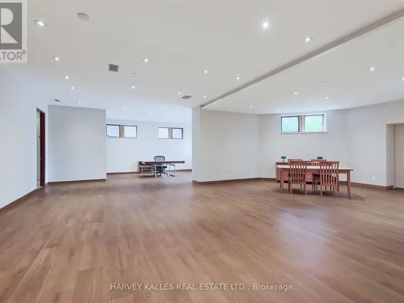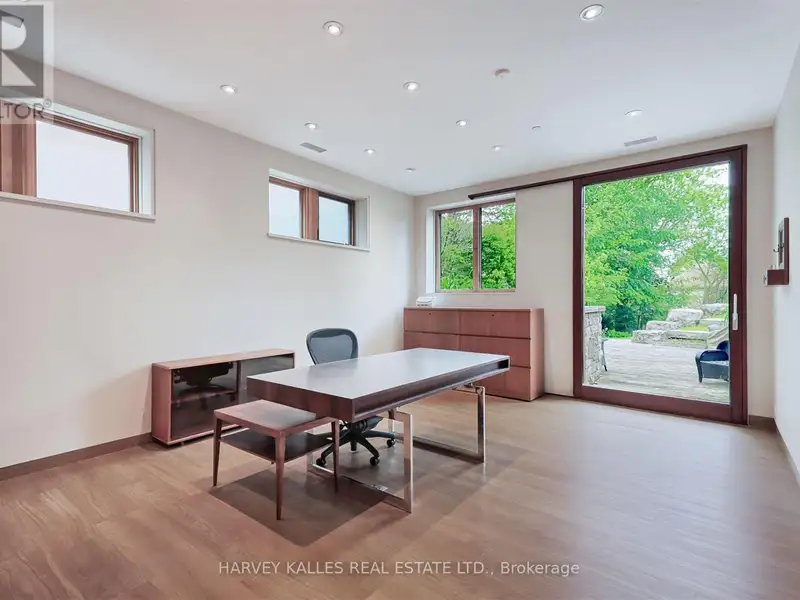Discover a gem, custom-built as a multi-generational home, offering over 11,000 sq ft of luxurious living space on a rare 125ft double lot at the edge of the Humber Valley in the tree-lined Kingsway neighbourhood. This residence is a statement of contemporary elegance and sophistication, perfect for the discerning family.Inside, experience clean lines and exquisite details that enhance comfortable luxury living, including sound-isolated suites, Jatoba hardwood floors, stunning Persian serpentinite kitchen countertops, and heated stone floors for ultimate comfort.Accessibility is a key feature, with snow melt for the front porch, steps, ramp and driveway, a commercial 4x6 ft elevator, and 4 ft wide hallways to ensure effortless movement throughout the residence.The ground floor features a bright, open-plan living area that seamlessly integrates the chefs kitchen, dining, and living spaces, extending to a partially covered upper deck with a 17ft wide opening. A heated 3-car garage is cleverly positioned at the side of the house.The primary retreat is where luxury meets tranquility, featuring two generous walk-in closets and two ensuites one complete with a massage room and whirlpool tub offering tree-top views. Two additional spacious bedrooms, each with walk-in closets, share a thoughtfully designed bathroom suite with dual sinks, ample storage, and a separate area for added privacy. The oversized fourth bedroom also includes its own ensuite bathroom and walk-in closet, providing comfort and convenience for family or guests.The ground floor bedroom suite with a Juliet balcony offers a perfect retreat for guests.Venture to the finished lower level, where 10+ ft ceilings create a light and airy ambiance.This expansive space features a wide sliding door leading to the lower deck, ideal for entertaining.With multiple entertainment areas, including a stepped home theatre and sprawling park-like backyard, this home is designed for those who appreciate spacious comfort. (id:6370)