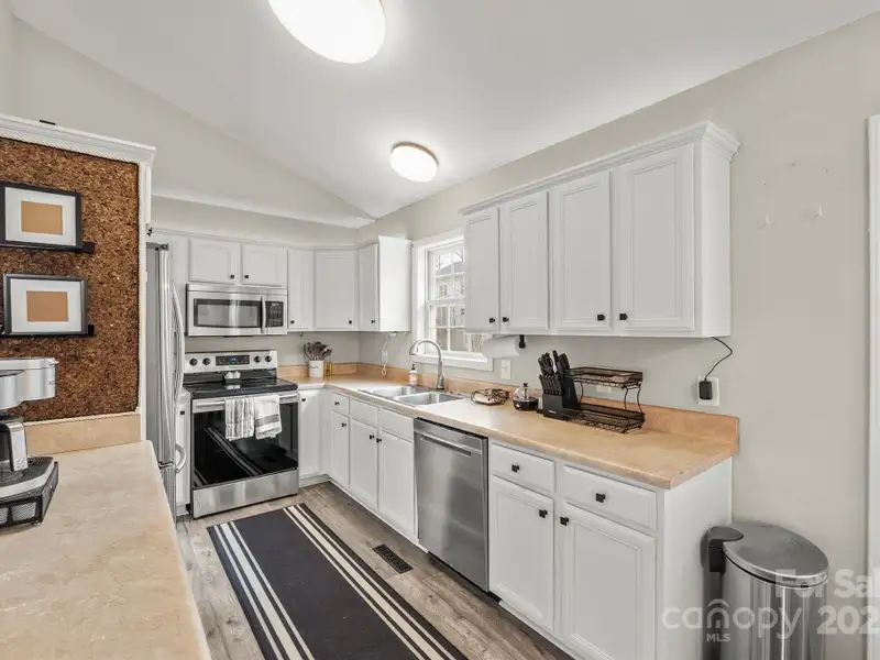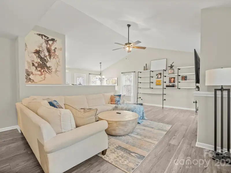 - Open kitchen with vaulted ceilings
