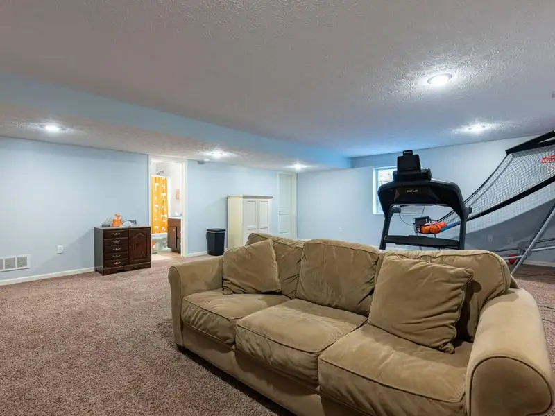 - Large finished lower level family room