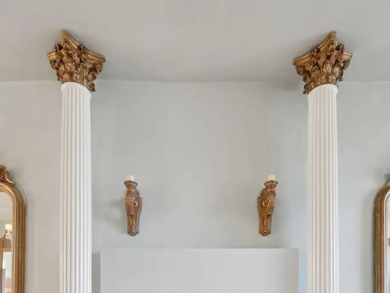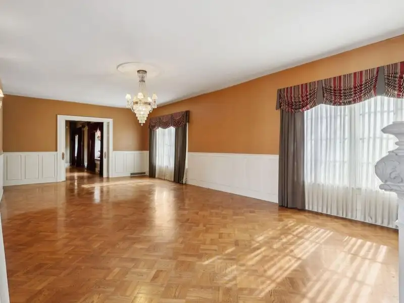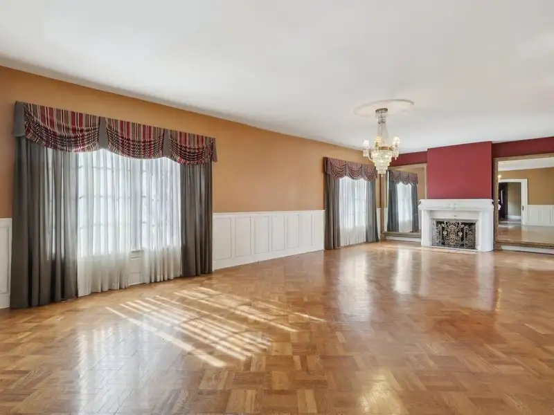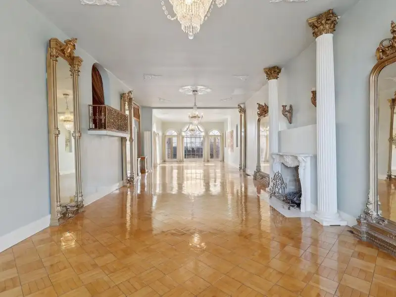 - Grand ballroom with balcony and parquet floors