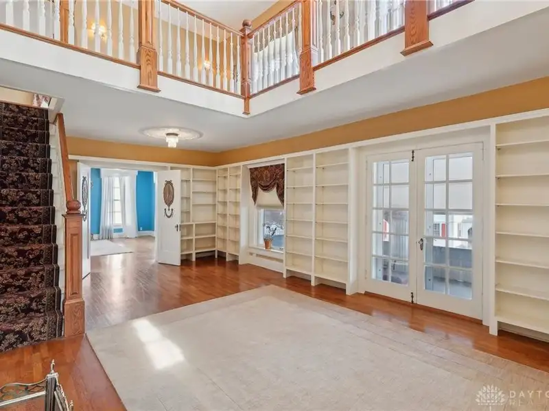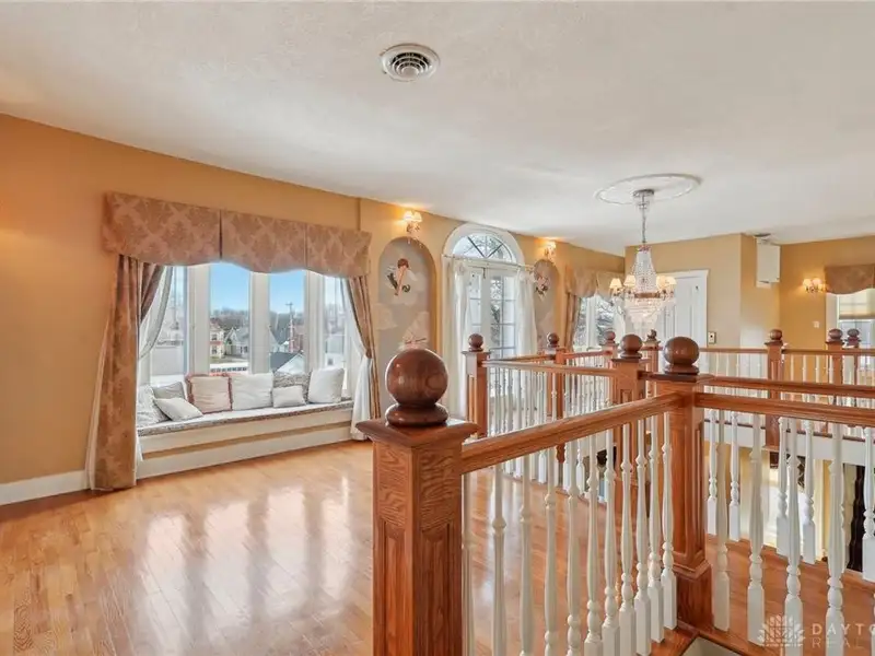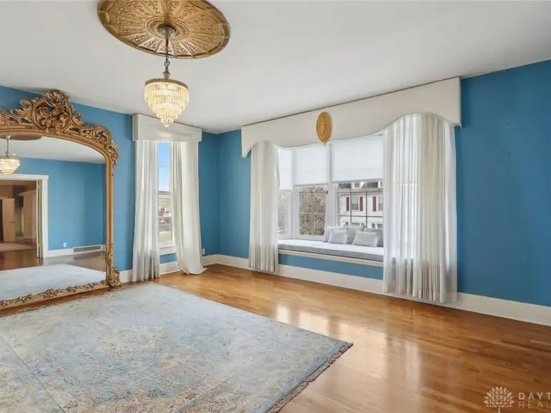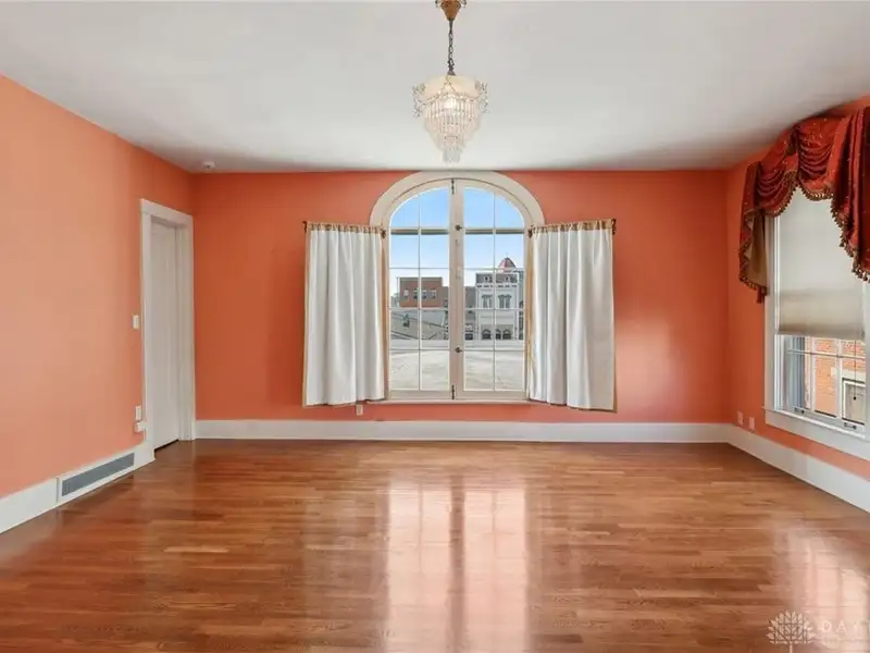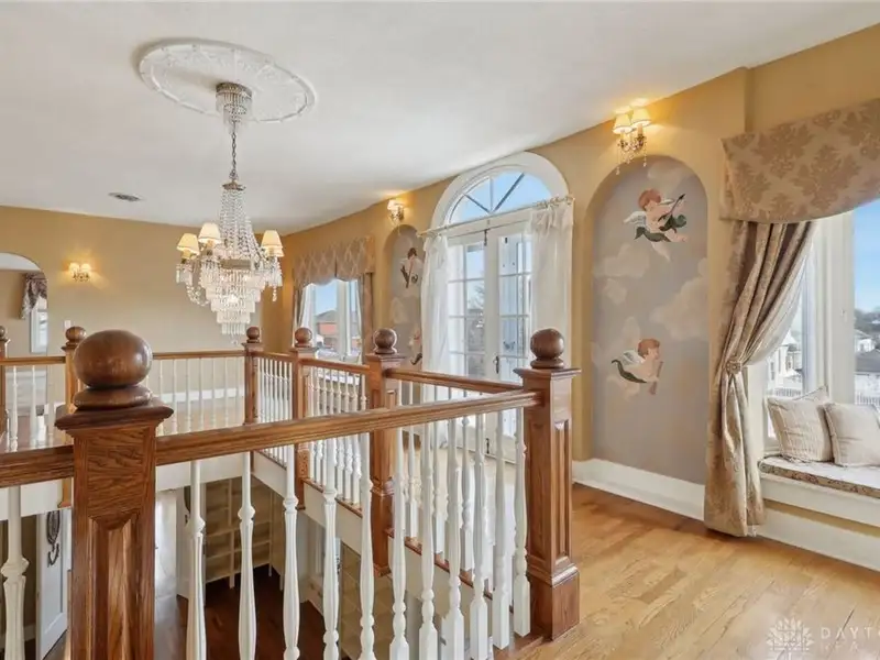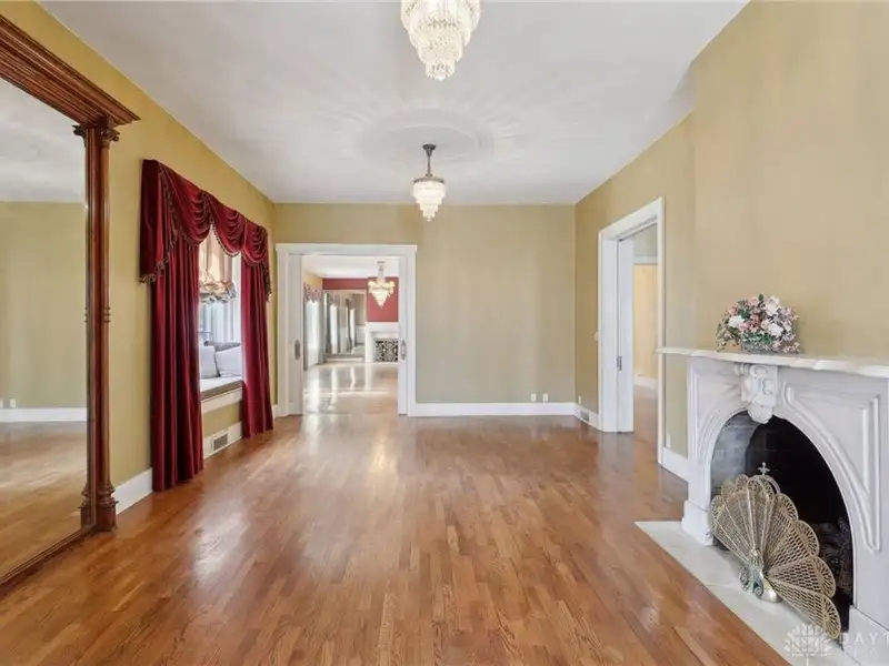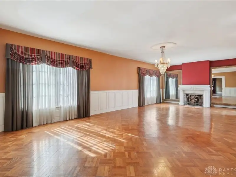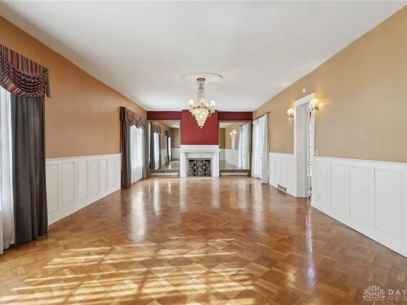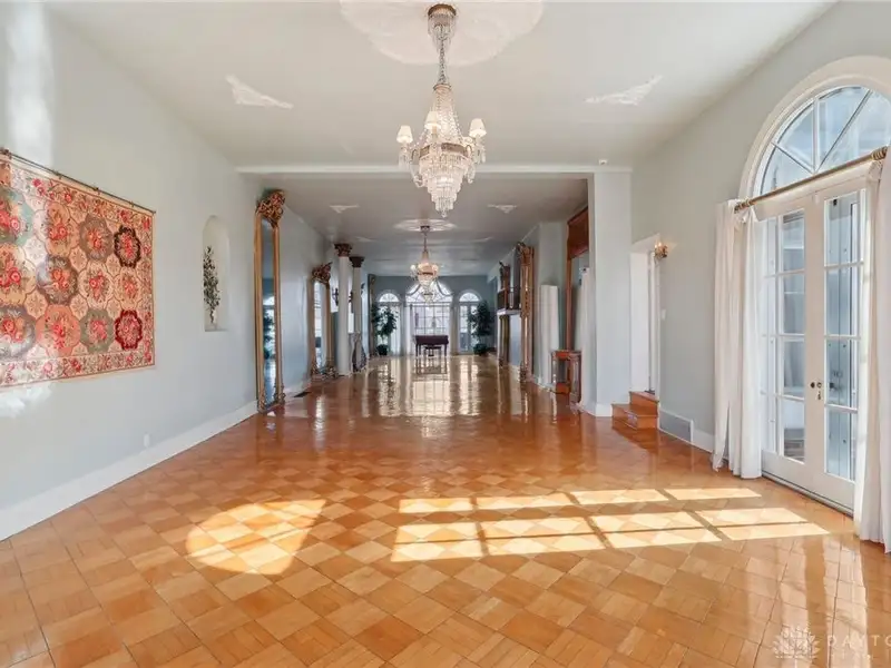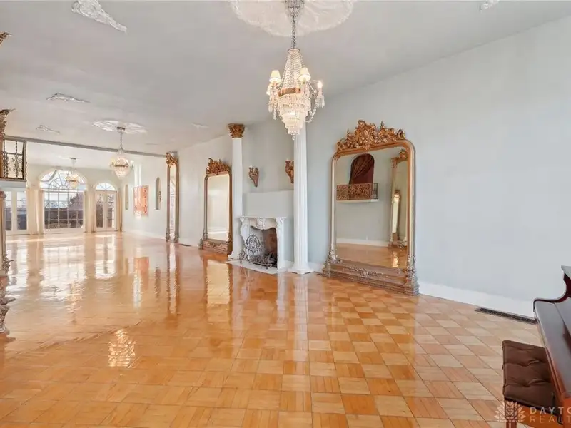 - Grand ballroom with balcony and parquet floors