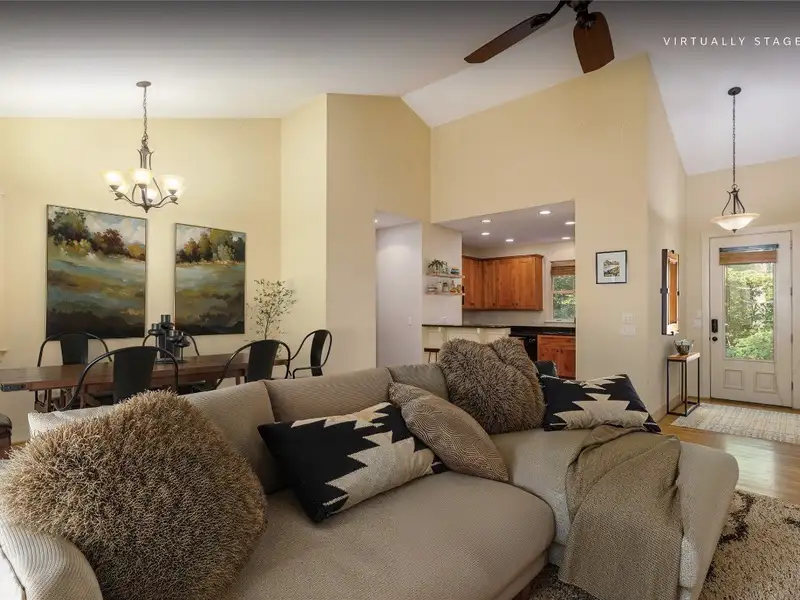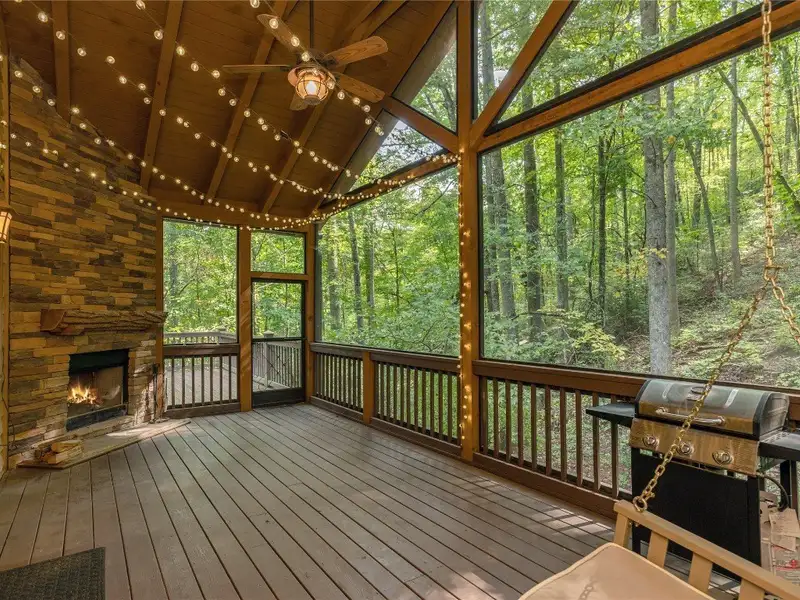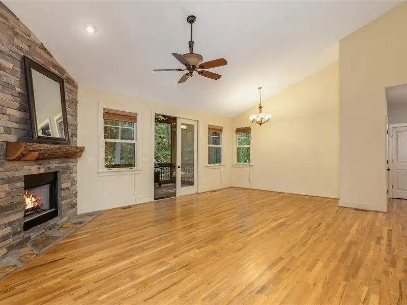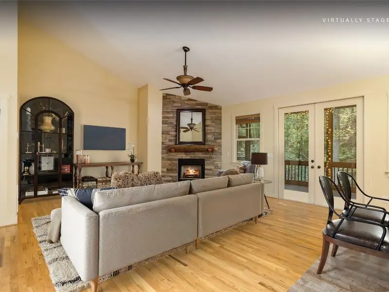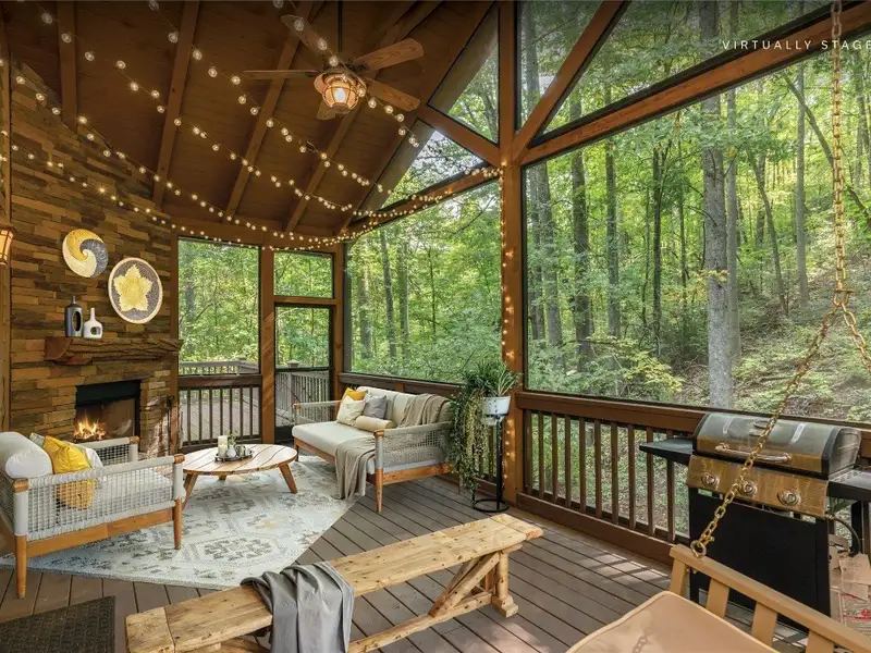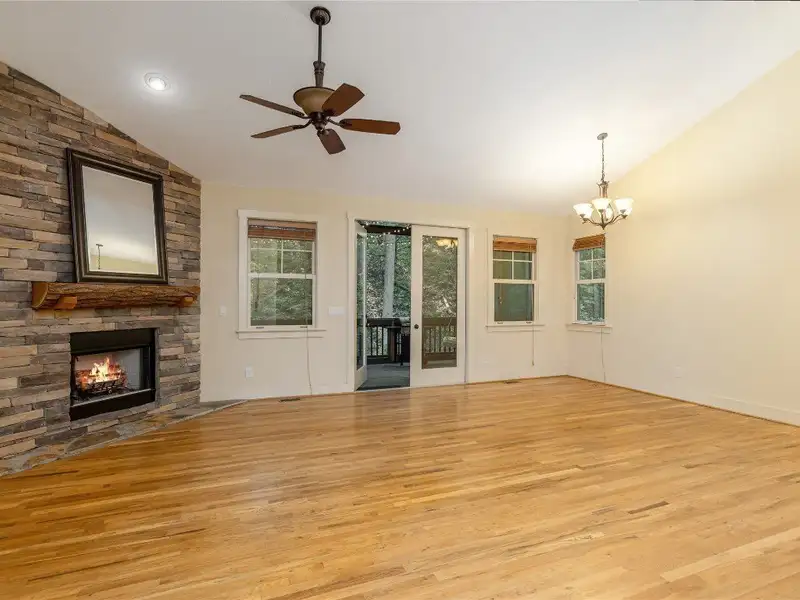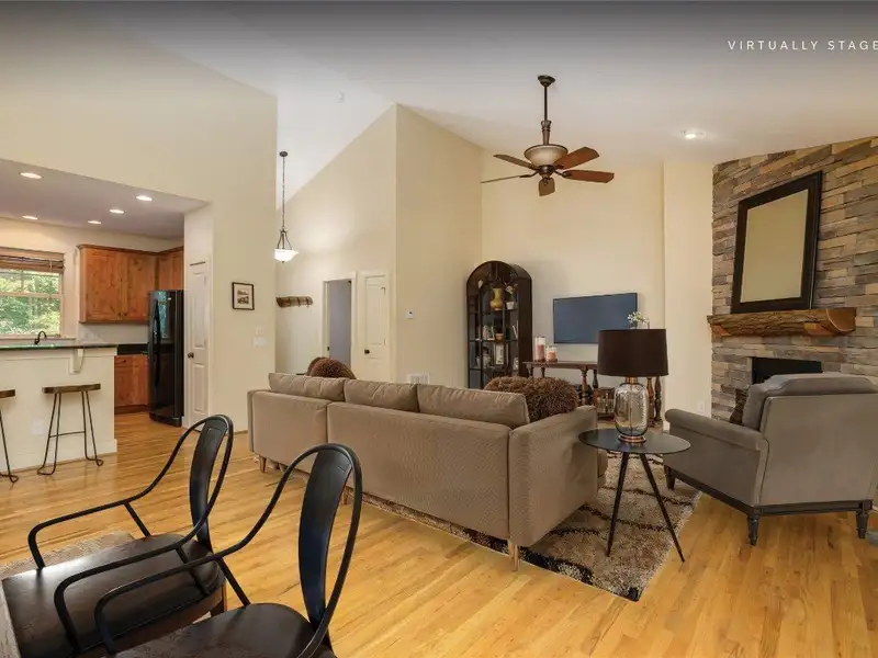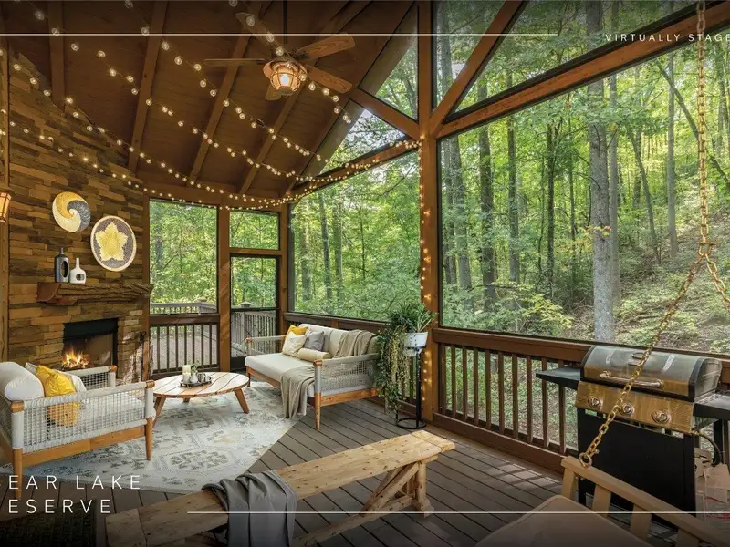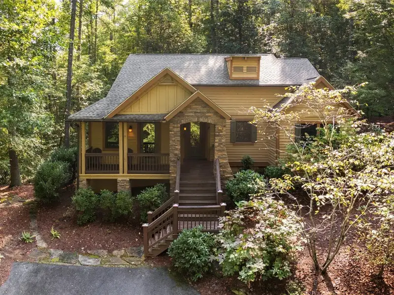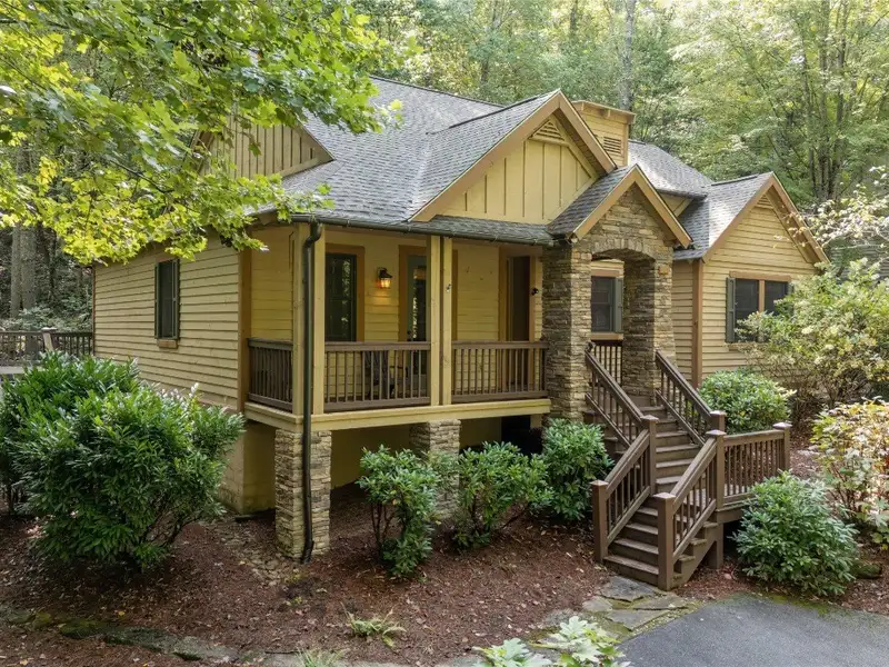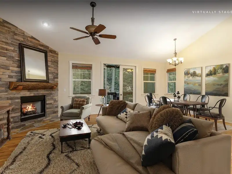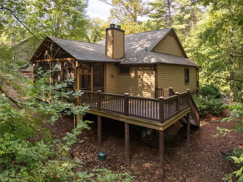 Tucked at the end of a quiet street beside a tranquil mountain creek, this single-level three-bedroom home offers privacy, comfort, and access to the exceptional amenities of Bear Lake Reserve. Designed for relaxed living and effortless entertaining, the residence combines timeless mountain charm with thoughtful upgrades, ensuring peace of mind and modern convenience. Inside, soaring cathedral ceilings and a handsome stone fireplace anchor an open-concept living area that flows seamlessly into the dining and kitchen areas, making the home ideal for all kinds of gatherings. The kitchen is both functional and beautiful with granite countertops and a breakfast bar overlooking the great room - perfect for casual meals and conversations with family or guests. Each of the three bedrooms offers comfort and privacy, with the primary suite serving as a welcoming haven after a day of exploring the mountains. Outside, a screened porch with a wood-burning fireplace provides a cozy retreat on cool evenings, while the open-air deck is a perfect spot for enjoying sunny afternoons, dining alfresco, or stargazing under clear Carolina skies. The nearby gentle creek creates a soothing natural backdrop to the tranquil setting. Updates over the past 3 years include a new roof, an HVAC system, a water heater, and a washer/dryer, ensuring the home is ready for years of enjoyment. Just steps from the front door is the starting point for one of Bear Lake Reserve's many hiking trails, leading deeper into the natural beauty of the Blue Ridge Mountains. Ownership at Bear Lake Reserve offers an unparalleled lifestyle, including access to a Jack Nicklaus golf course, a state-of-the-art fitness center, a swimming pool, tennis and pickleball courts, and a marina. A vibrant calendar of community events provides opportunities to connect with neighbors and build lasting memories. From outdoor adventure and wellness to simply unwinding in a luxurious mountain setting, Bear Lake Reserve offers something for all tastes and interests. Discover a home that balances mountain serenity with resort-style living. Virtually staged photos are included to showcase the potential of the property.