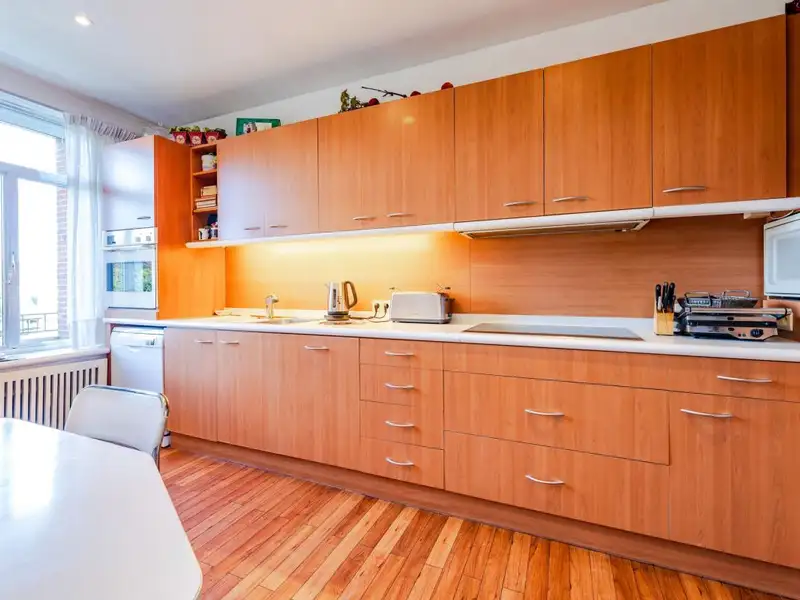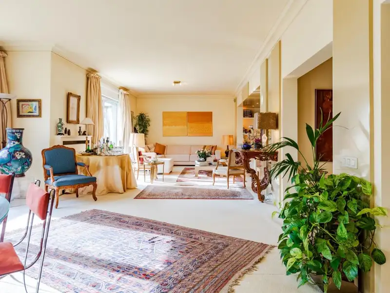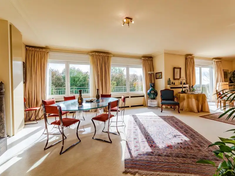 Opposite Brugmann Park, attractive duplex penthouse apartment on the 7th and 8th floors of a partially renovated building dating from 1965, with spectacular views. It has a surface area of approximately 285 m² and terraces of 70 m², offering a spacious reception room, a large fitted kitchen, 4/5 bedrooms, and 2 bathrooms. Garage for 2 cars. EPC G.