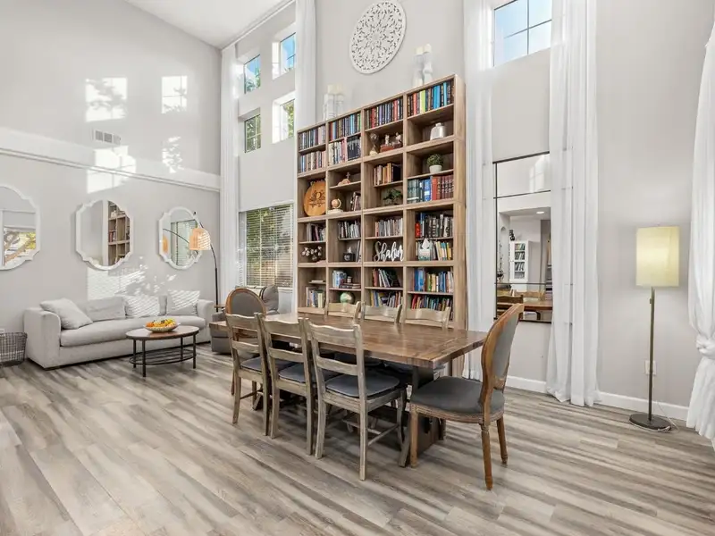 - Vaulted ceilings creating open feel