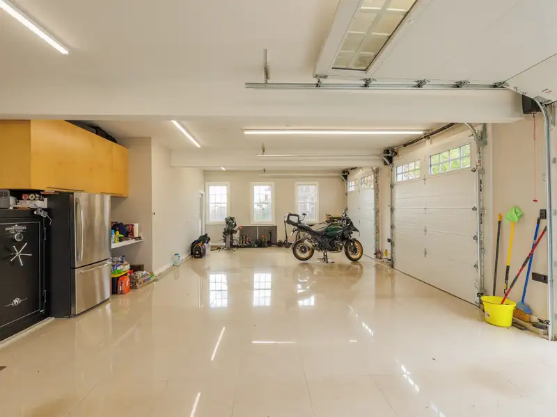 - Attached three-car heated garage